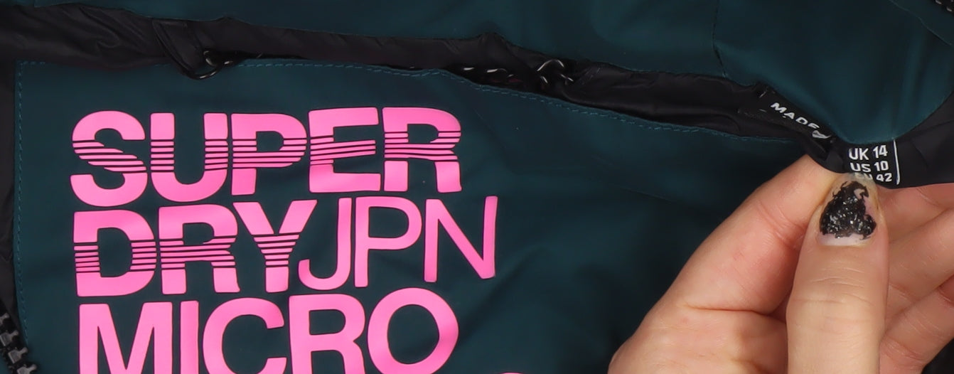 Superdry Women’s Green Hooded Puffer Jacket Size 14