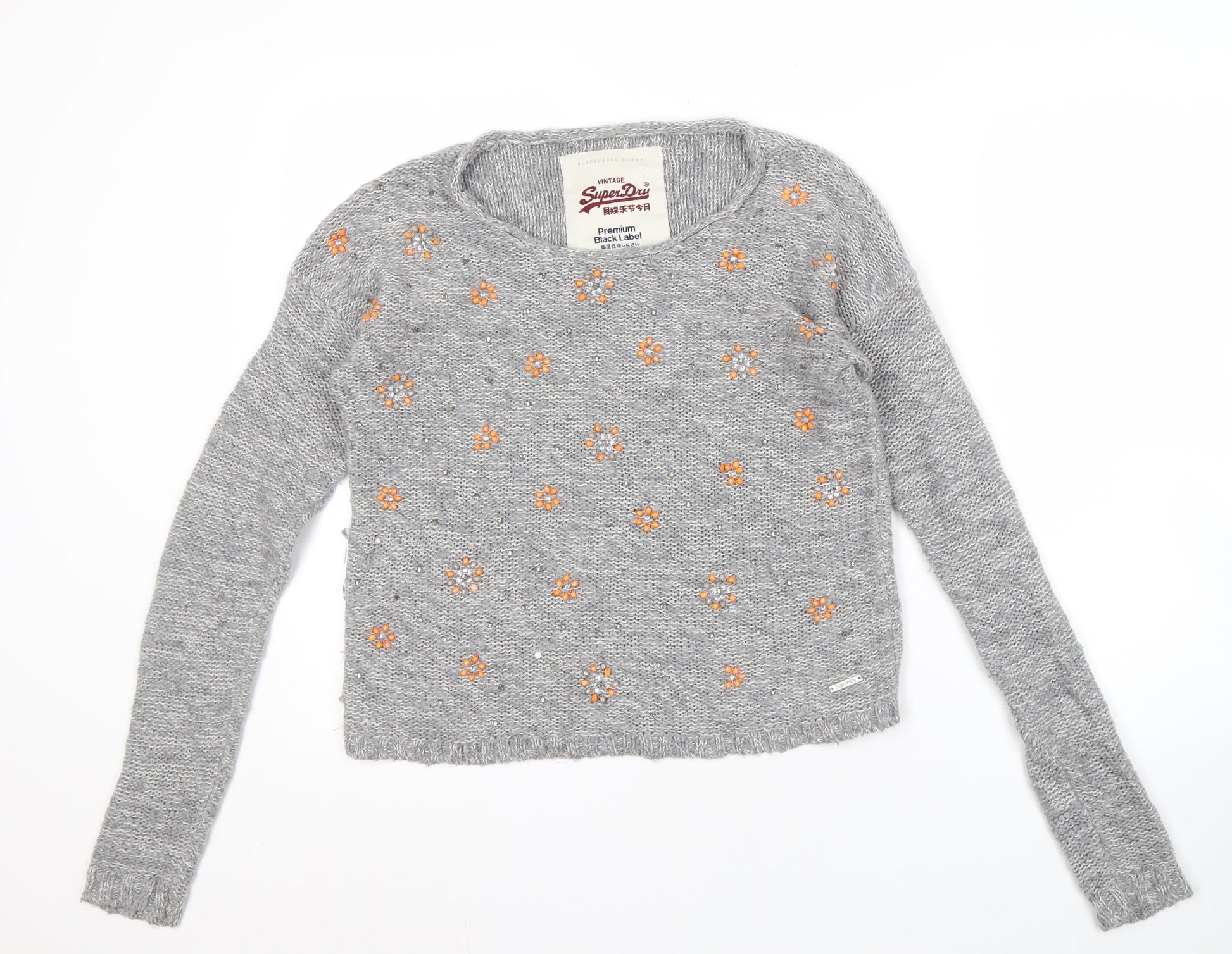 Superdry Women’s Grey Floral Knit Pullover Jumper, M