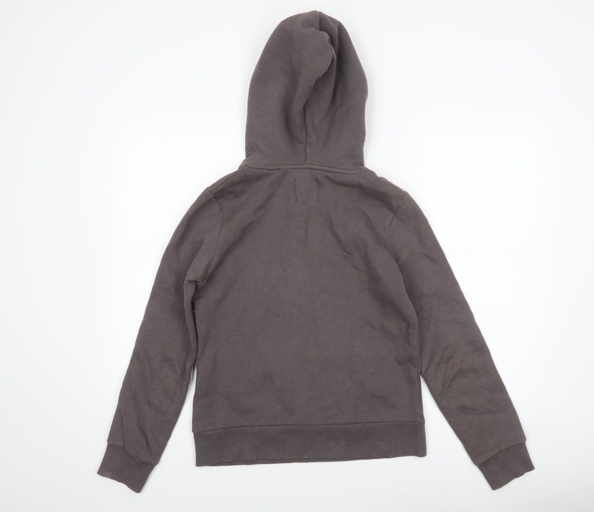 Superdry Women’s Grey Pullover Hoodie UK 8 Embroidered Graphic Cotton Blend