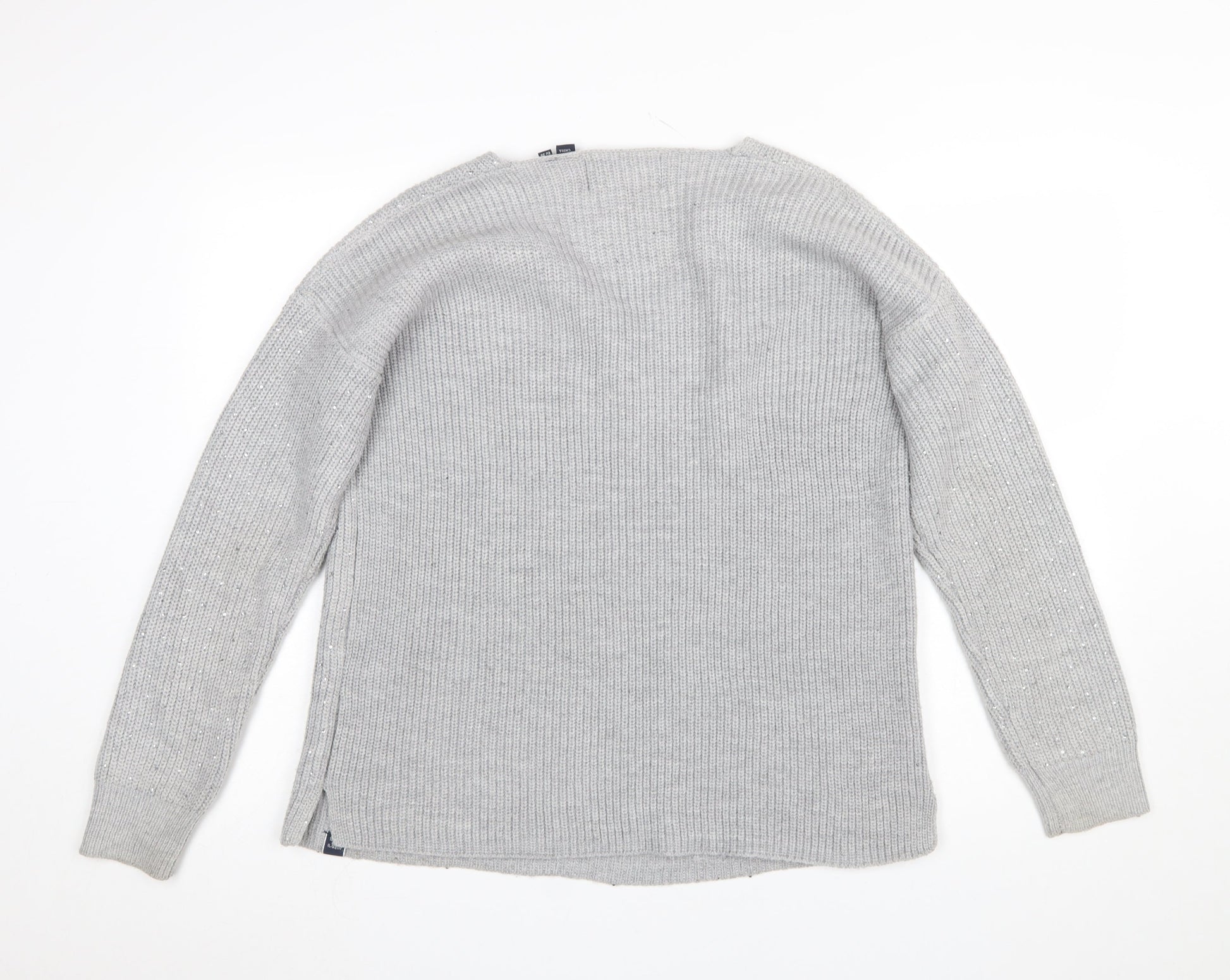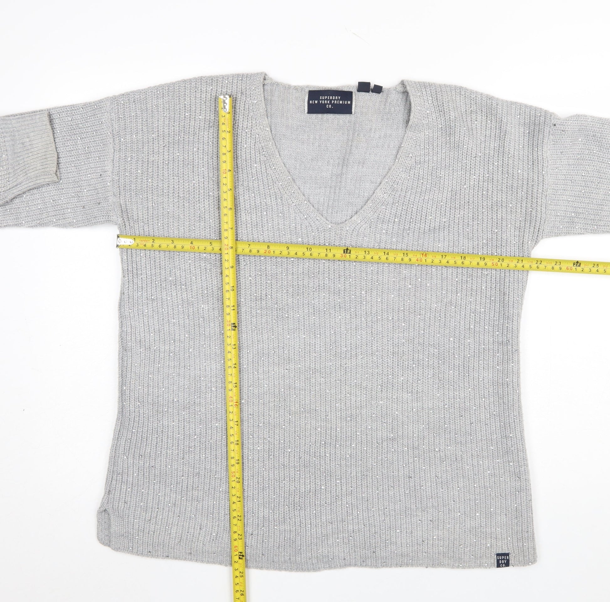 Superdry Women’s Grey V-Neck Sequin Knit Jumper Size 10