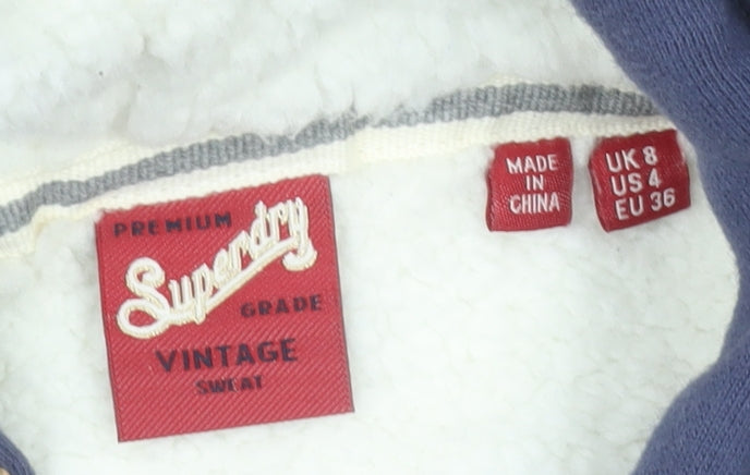 Superdry Women’s Navy Full Zip Hoodie UK 8 Cotton Blend Lined