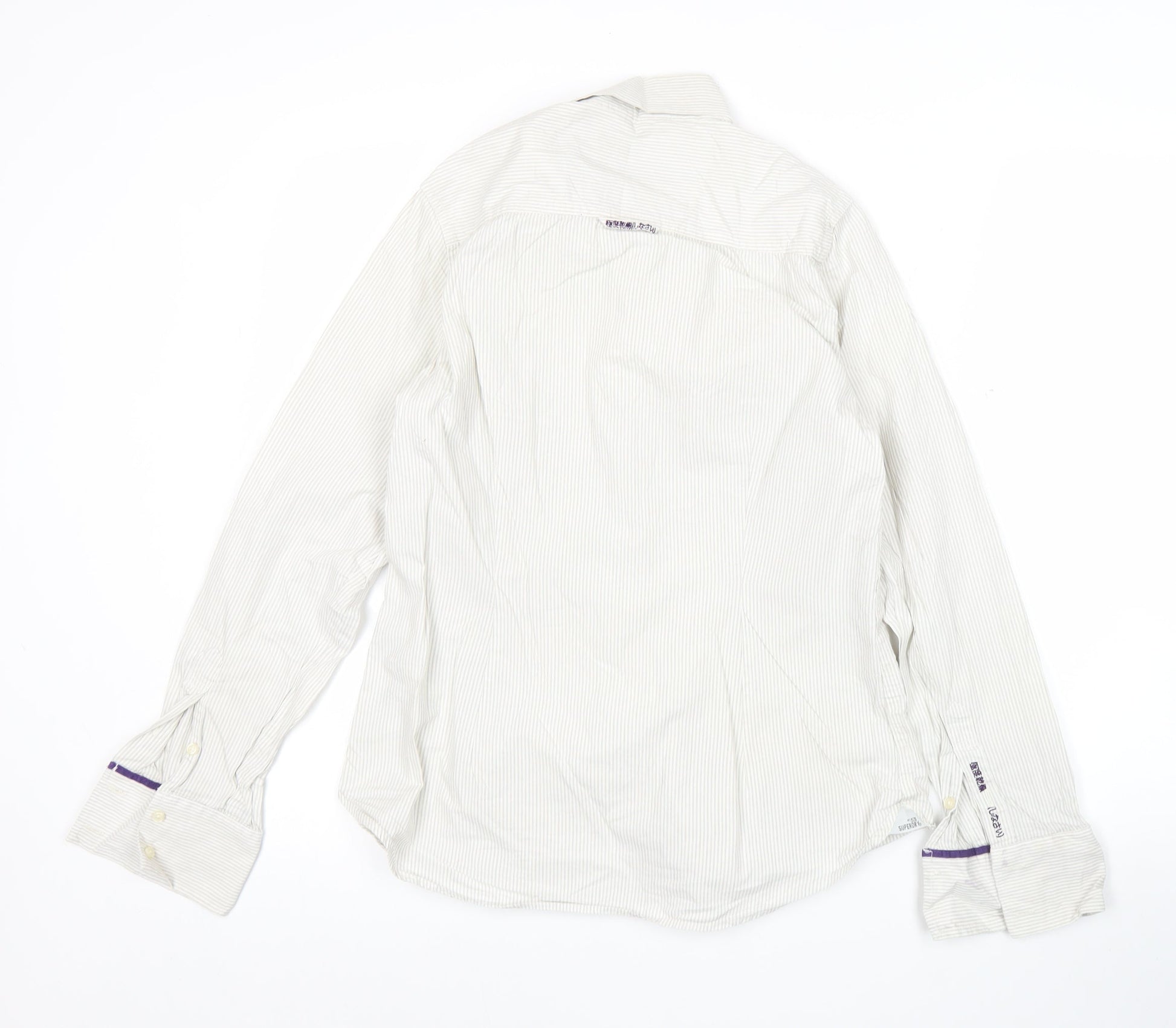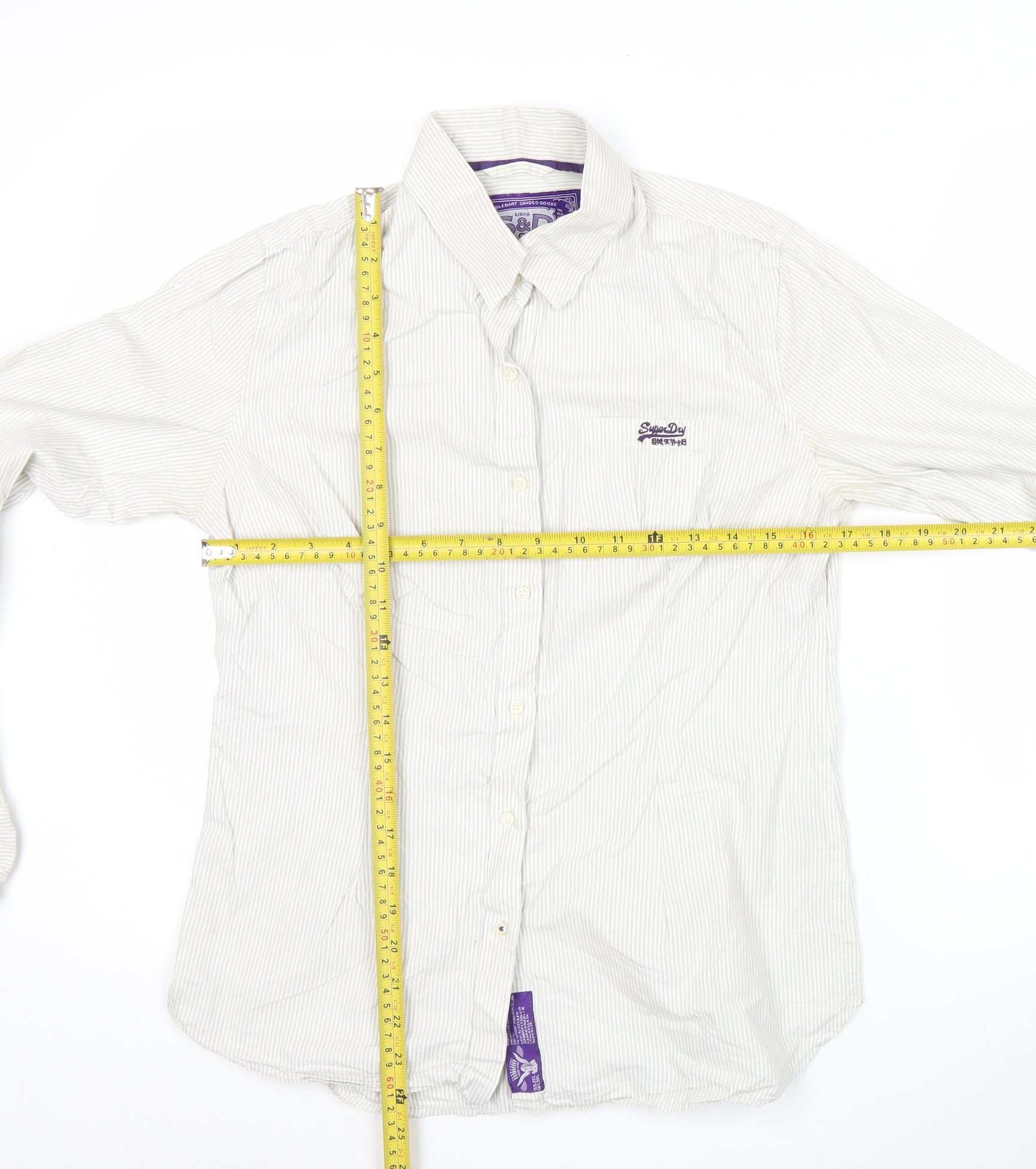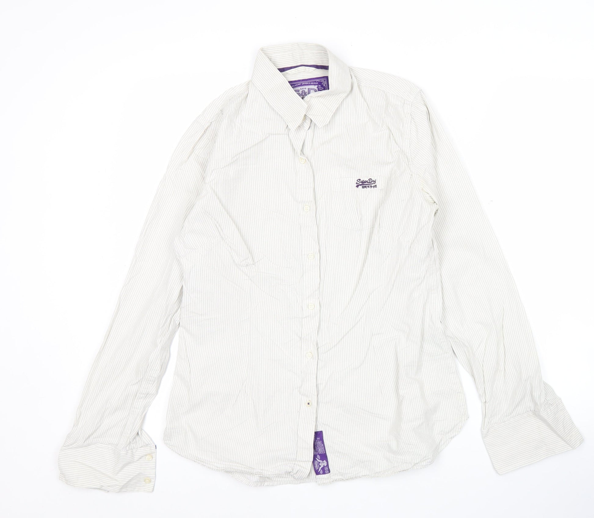 Superdry Women’s White Striped Button-Up Shirt Size M Long Sleeve Cotton