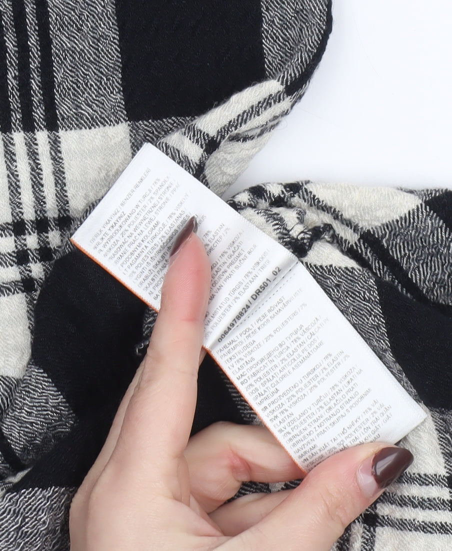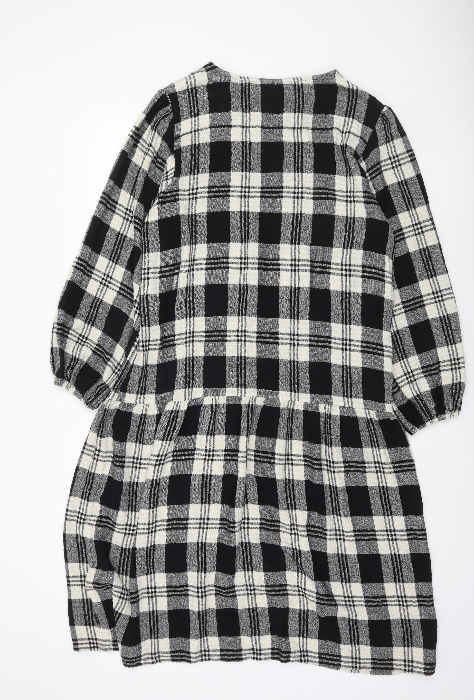Superdry Women's Black Check Shift Dress Size 14 Long Sleeve Casual