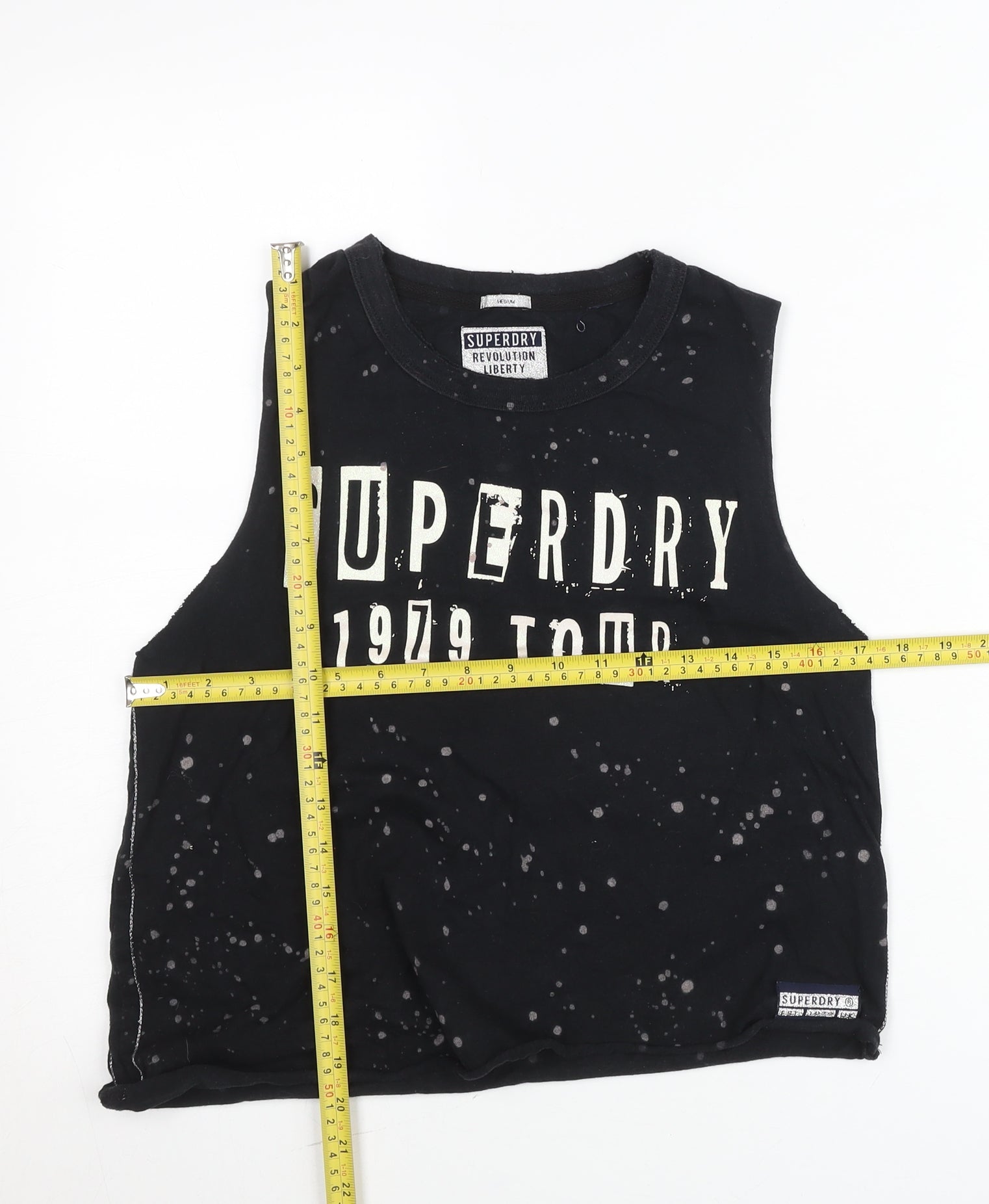 Superdry Womens Black Cropped Tank Top Medium 1979 Tour Graphic