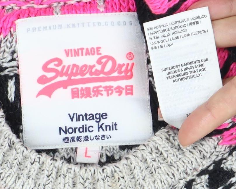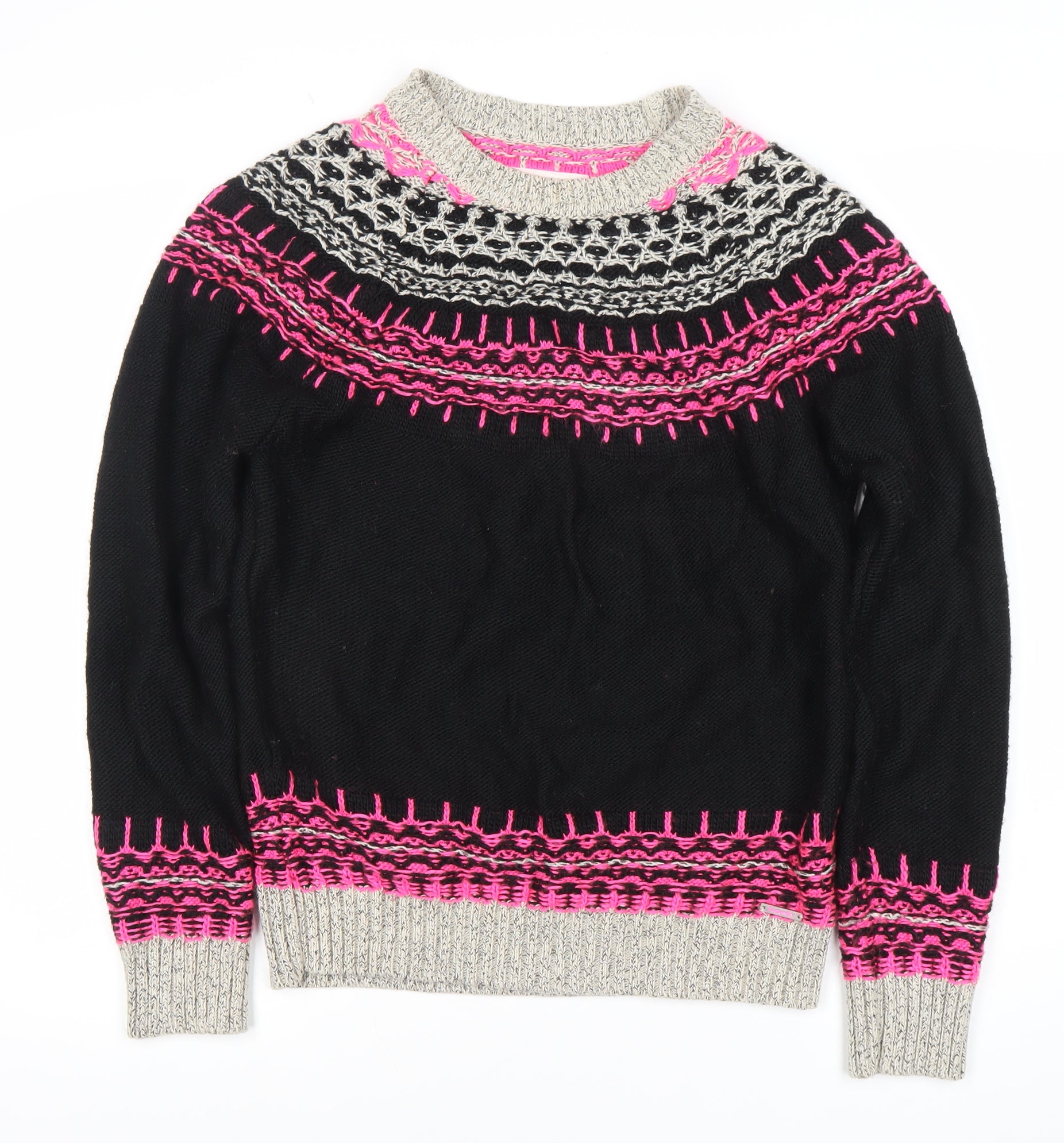 Superdry Women's Black Fair Isle Knit Jumper, Size L