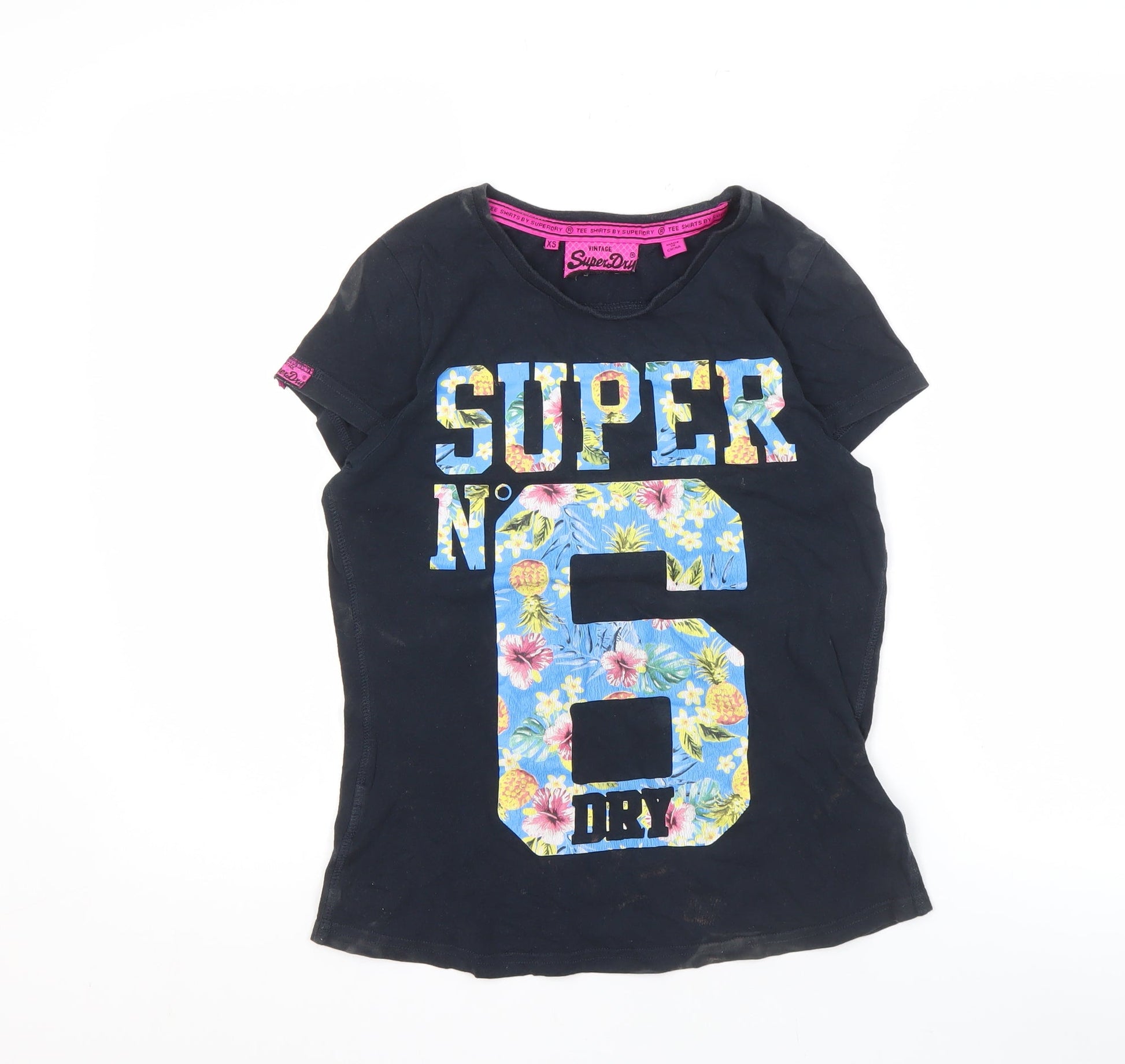 Superdry Women's Black Floral XS Vintage T-Shirt