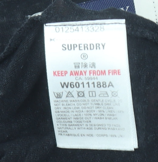 Superdry Womens Black Lace Long Sleeve Jersey T-Shirt Size 12