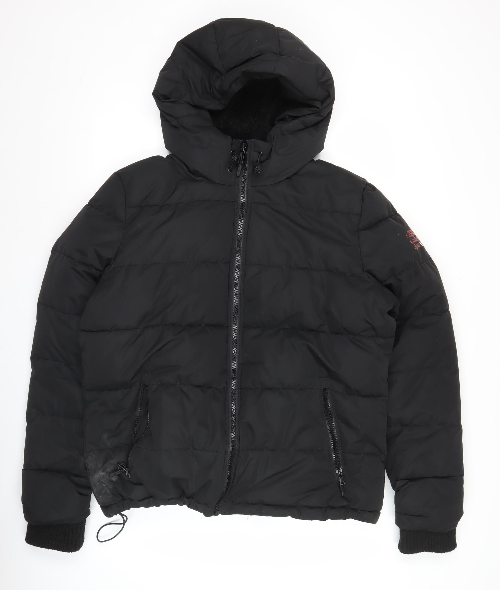 Superdry Womens Black Puffer Jacket Size 16 Hooded Winter Coat