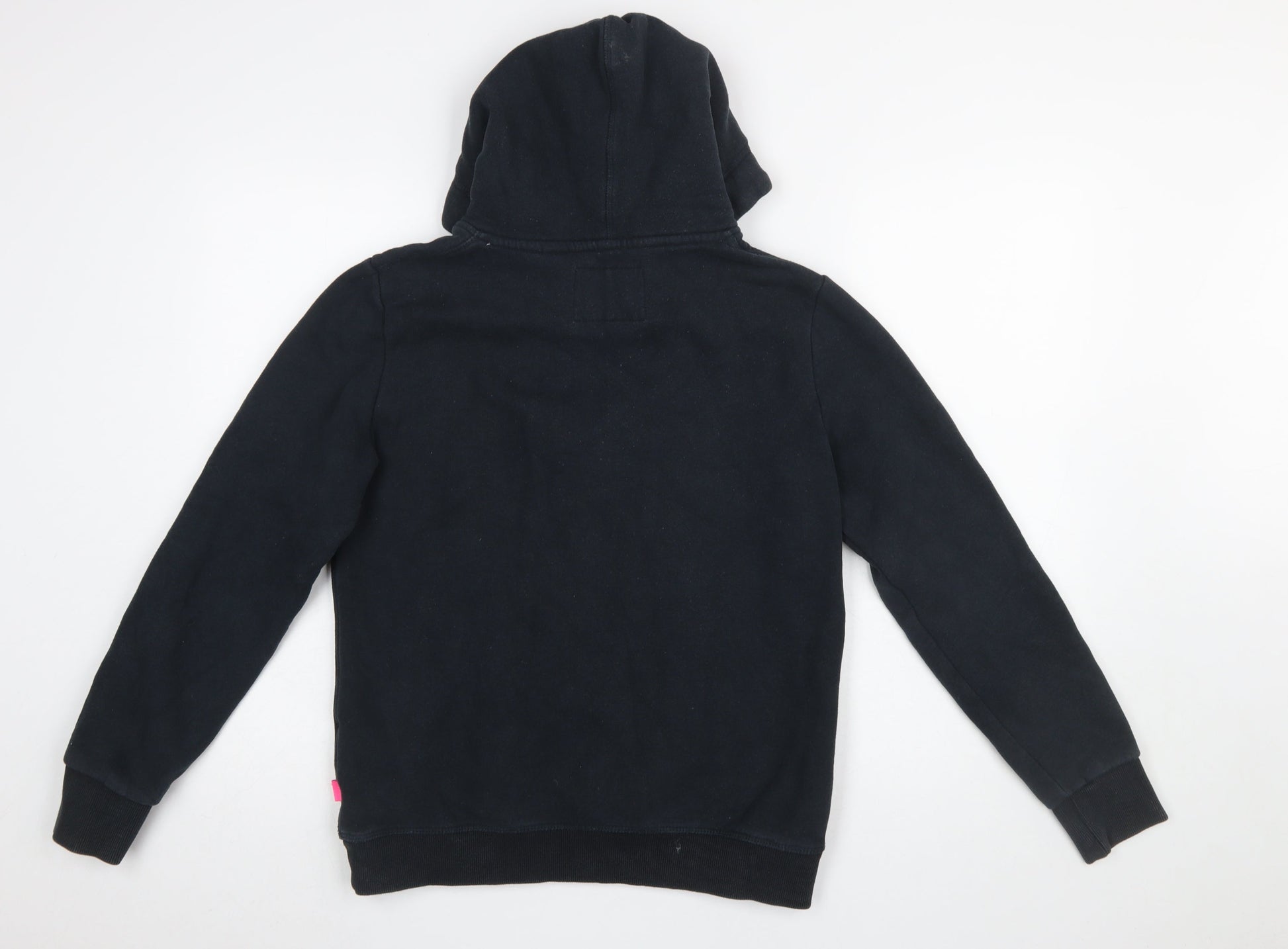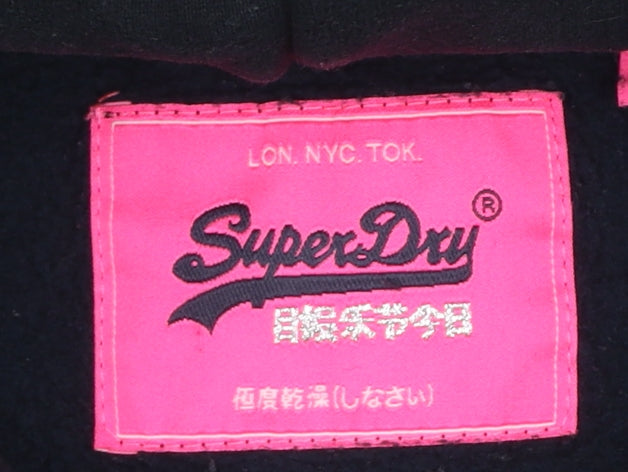 Superdry Women's Black Pullover Hoodie Size 14 Graphic Print Cotton Blend