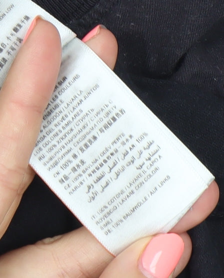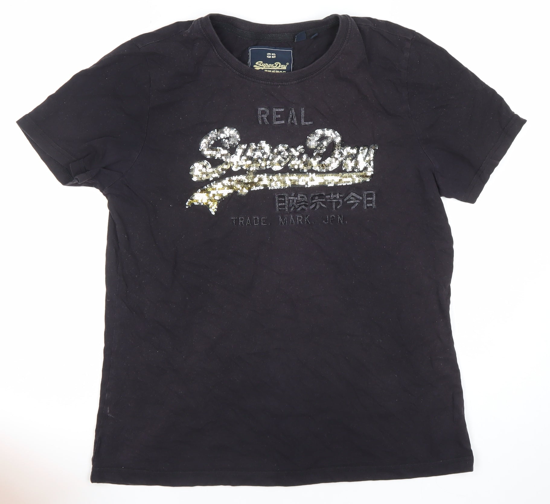 Superdry Womens Black Sequin Logo T-Shirt Size 14 Short Sleeve