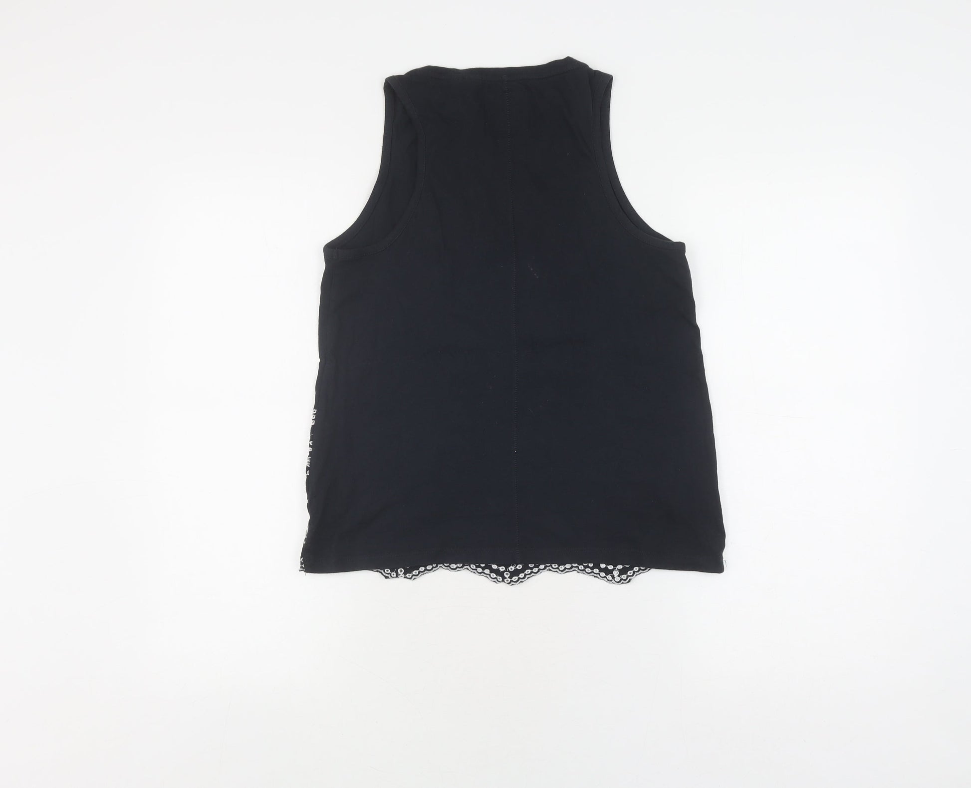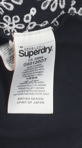 Superdry Women's Black Tank Top, Size 6, Embroidered