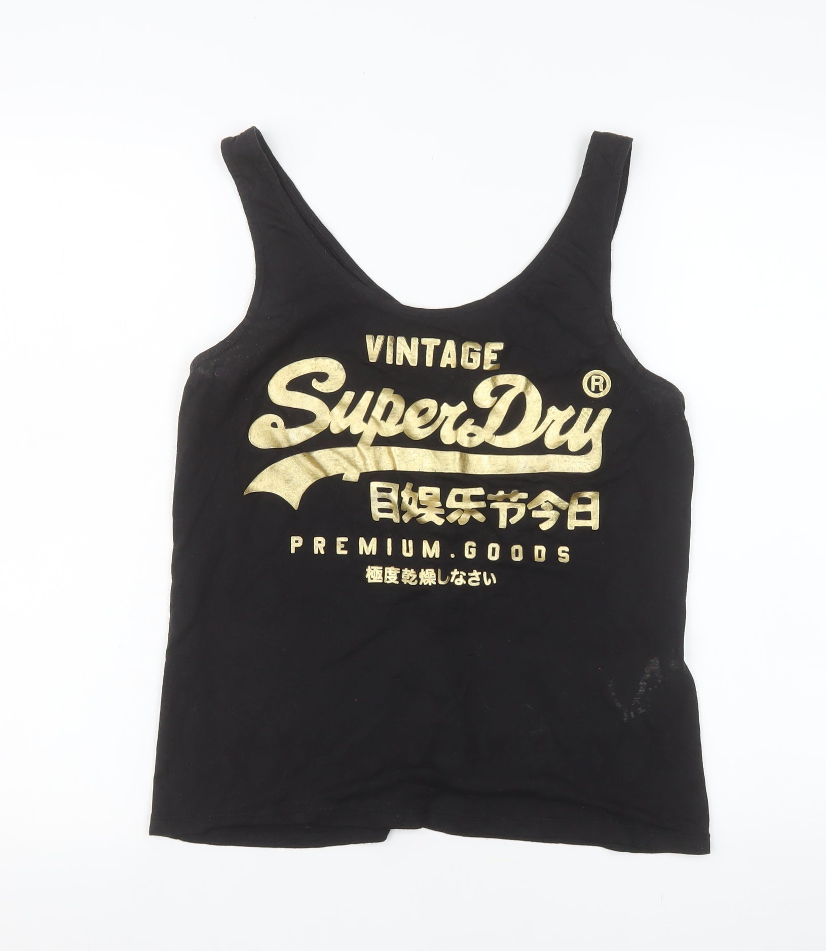 Superdry Women's Black Tank Top Size 8 Vintage Logo Cotton Vest