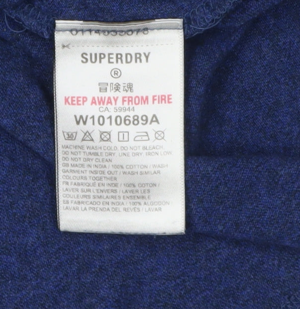 Superdry Women's Blue Cotton Crew Neck T-Shirt - Size 8