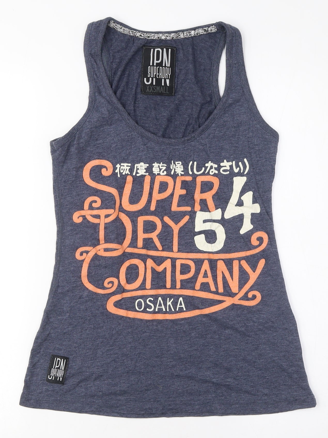 Superdry Women's Blue Cotton Tank, Size 2XS, Casual Slim Fit
