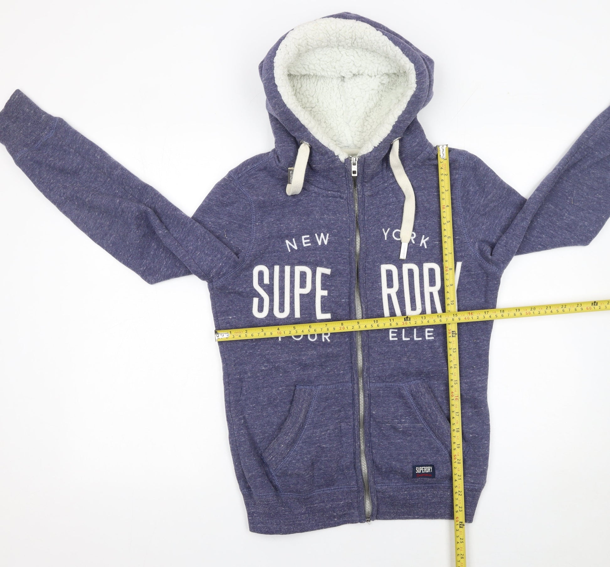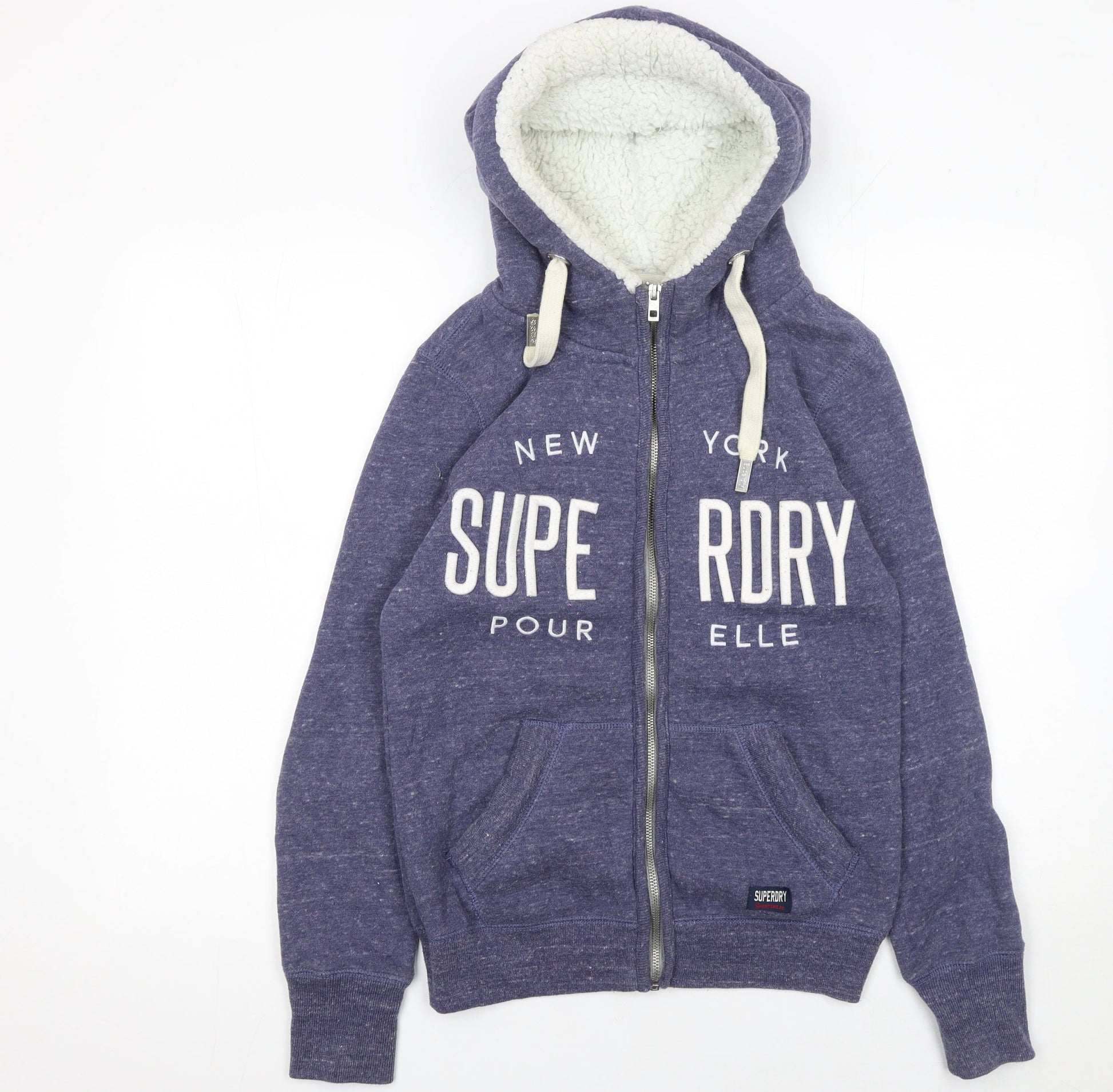 Superdry Women's Blue Full Zip Hoodie Medium Fleece Lined Casual