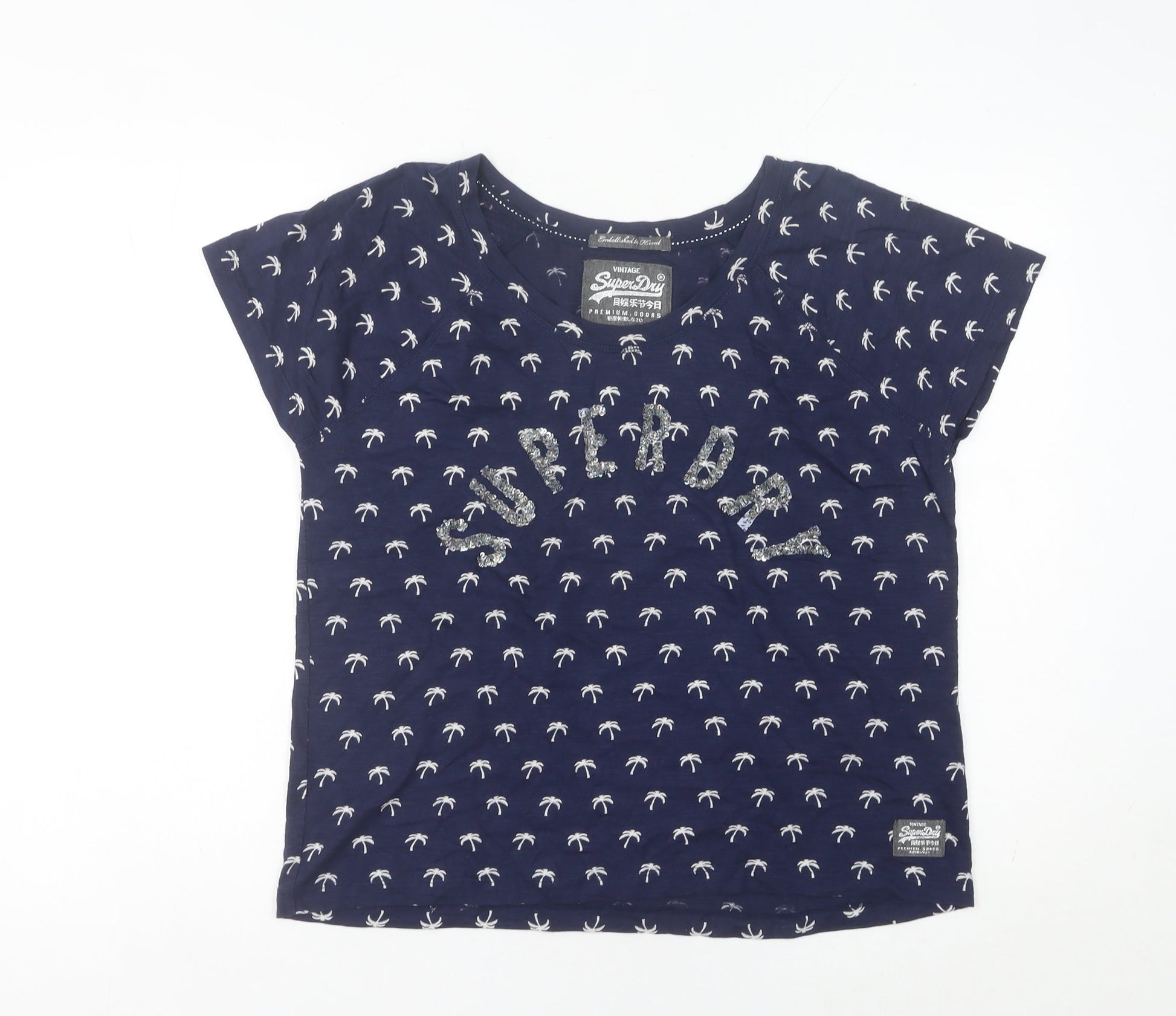Superdry Womens Blue L Tropical Sequin Embellished T-Shirt