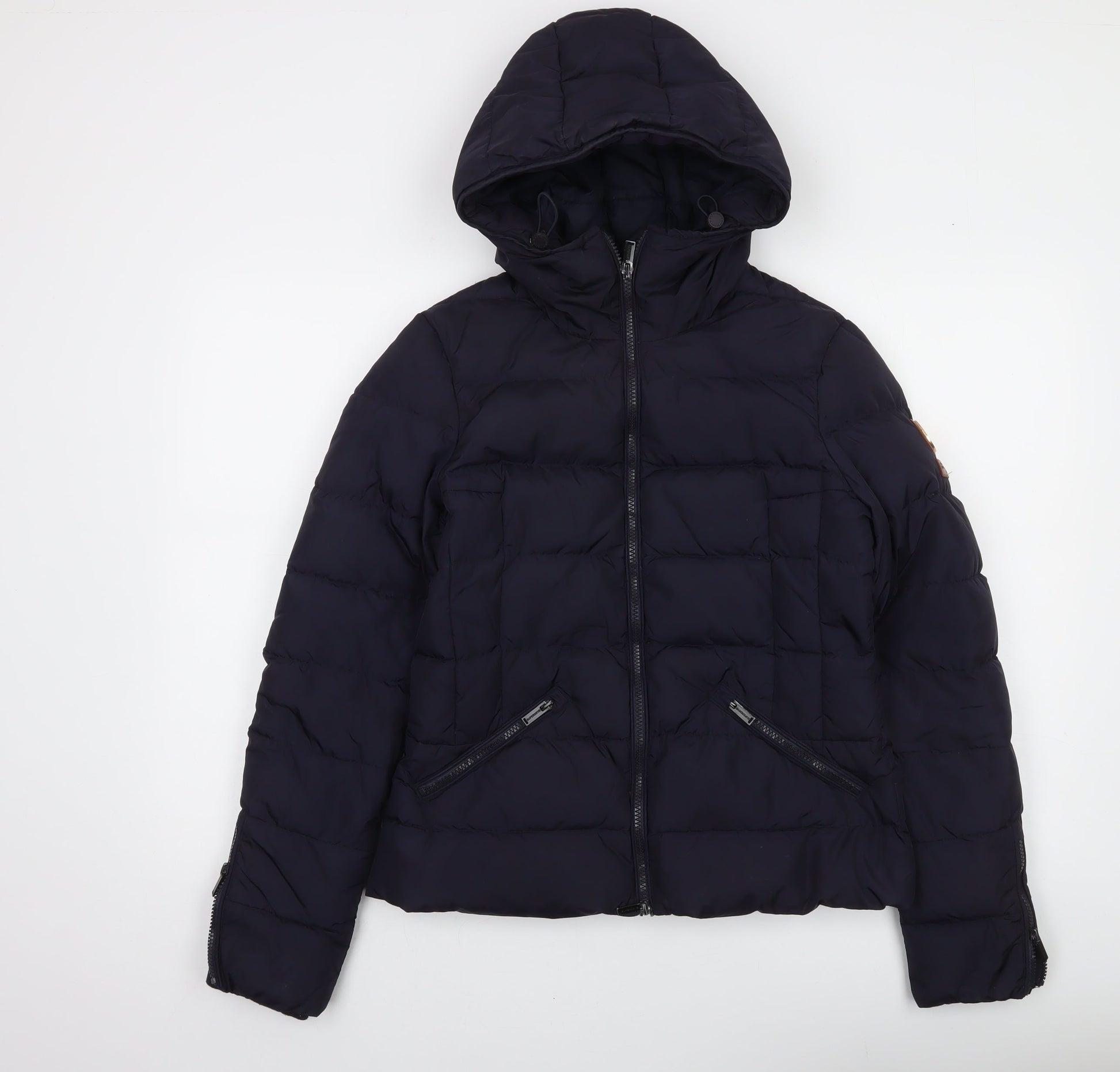 Superdry Womens Blue Puffer Jacket Size 10 Hooded Down Luxe