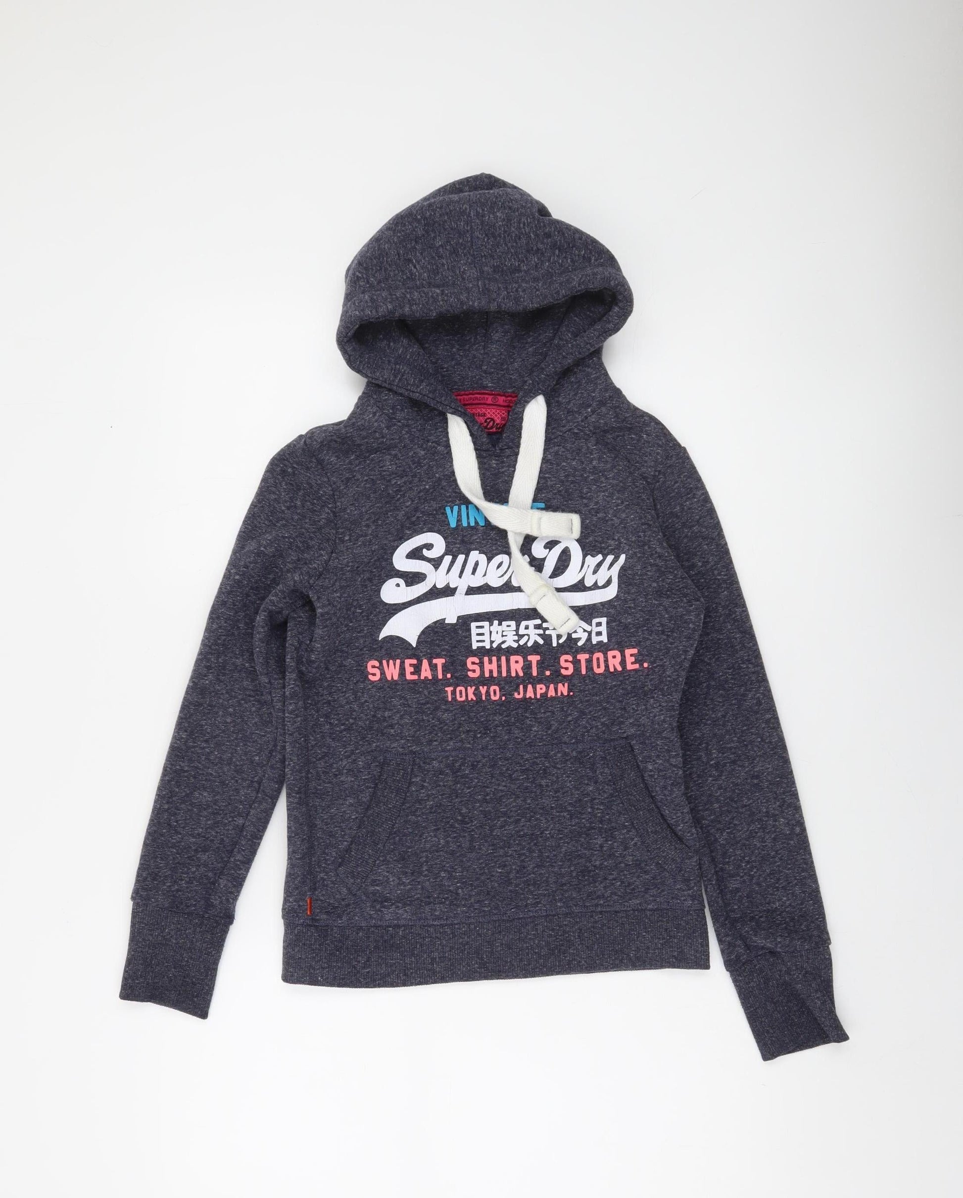 Superdry Womens Blue Pullover Hoodie XXS Vintage Graphic Sweatshirt