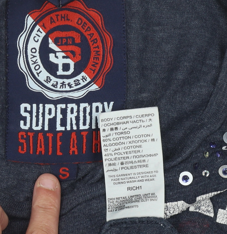 Superdry Women's Blue Sequin T-Shirt Size S Casual
