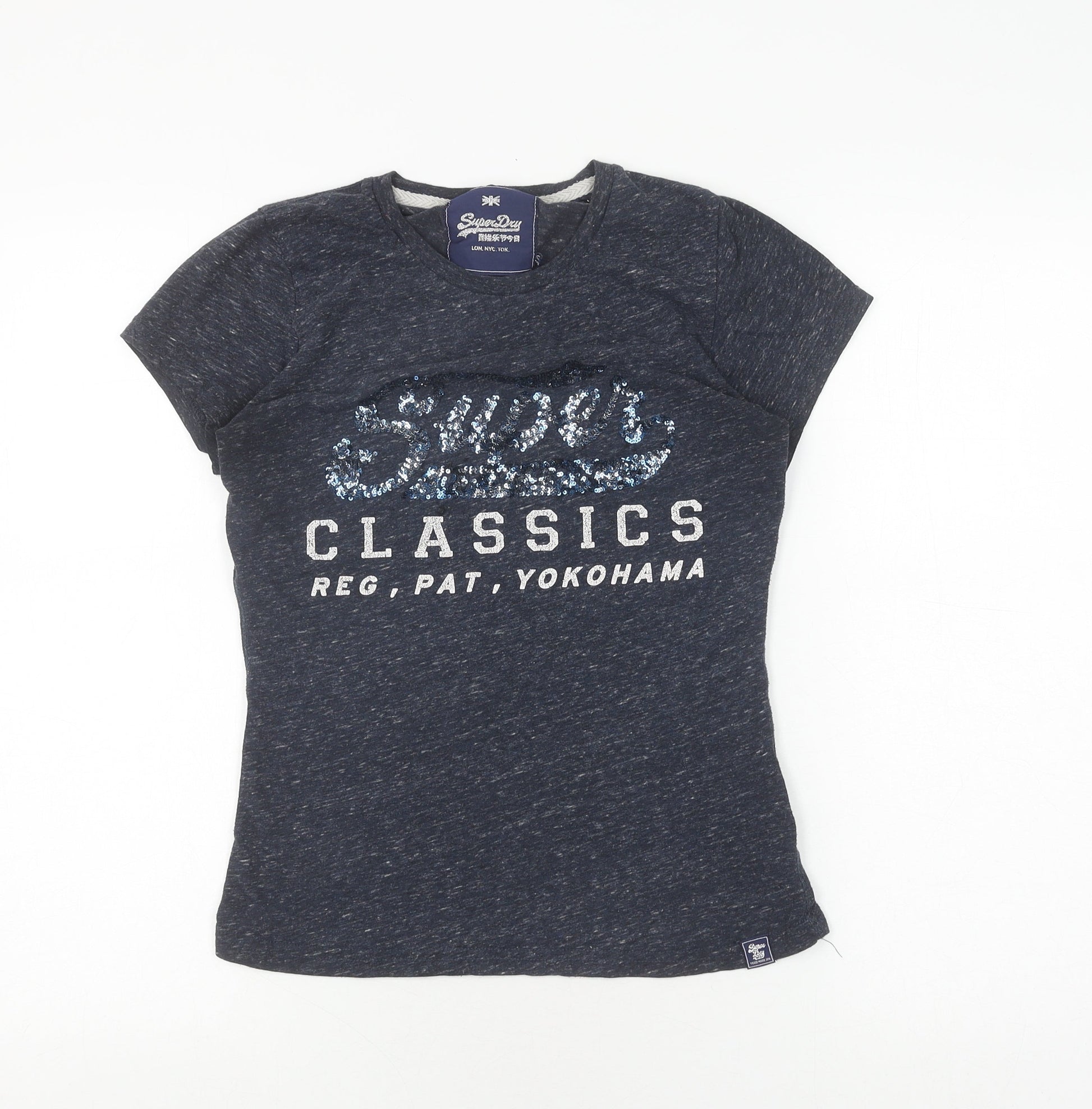 Superdry Women's Blue Sequin Tee, S, Casual, Cotton Blend