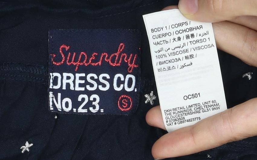Superdry Womens Blue Star Embroidered Slip Dress Size S Summer Casual