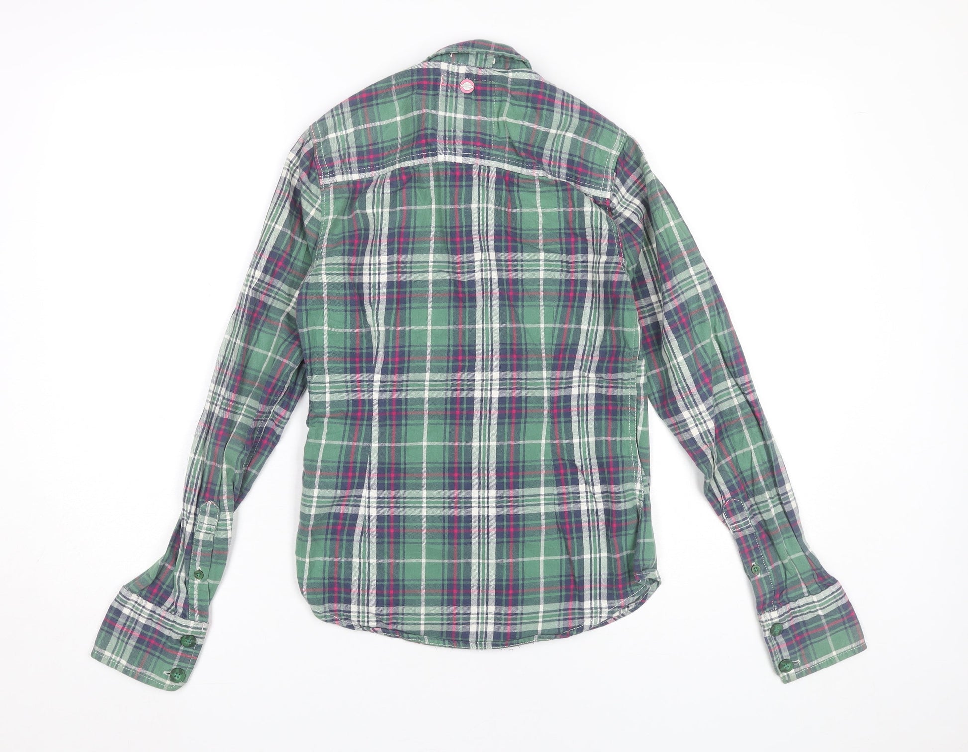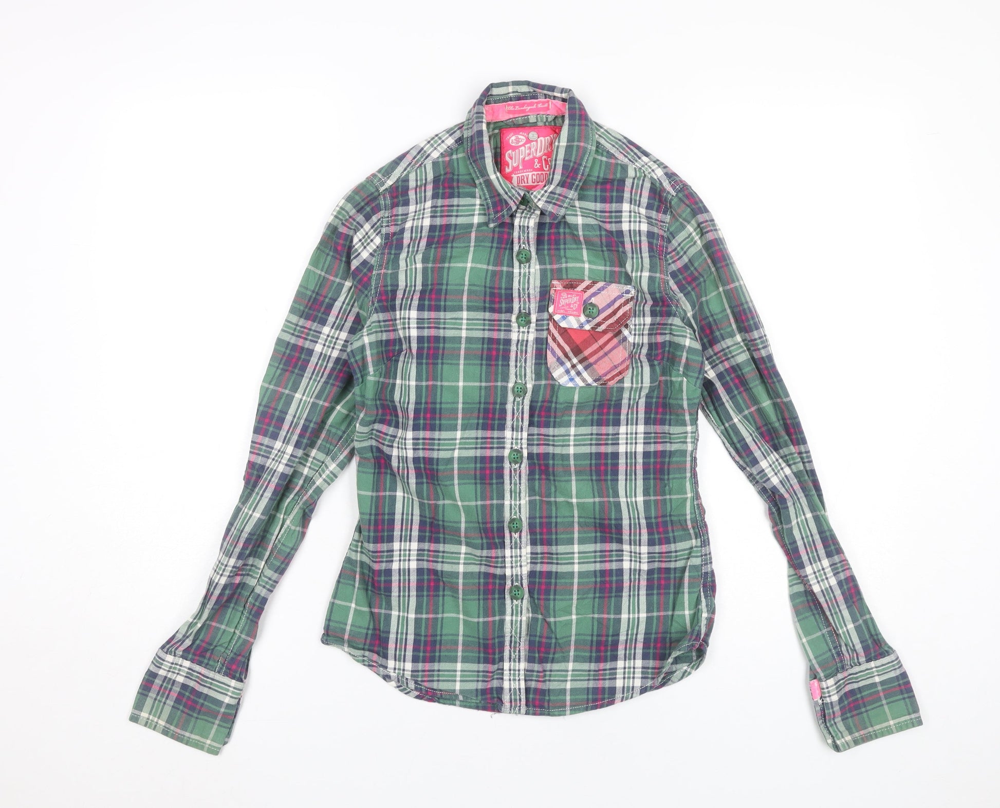 Superdry Womens Green Plaid Cotton Button-Up Shirt 2XS Slim Fit