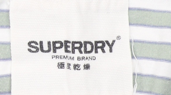 Superdry Women's Green Striped Cotton T-Shirt UK 14 Short Sleeve