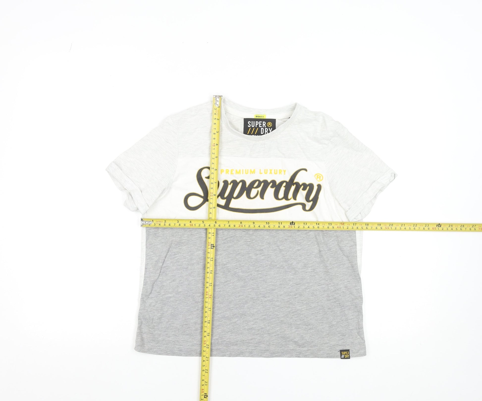 Superdry Women's Grey Colourblock Logo T-Shirt Size 8