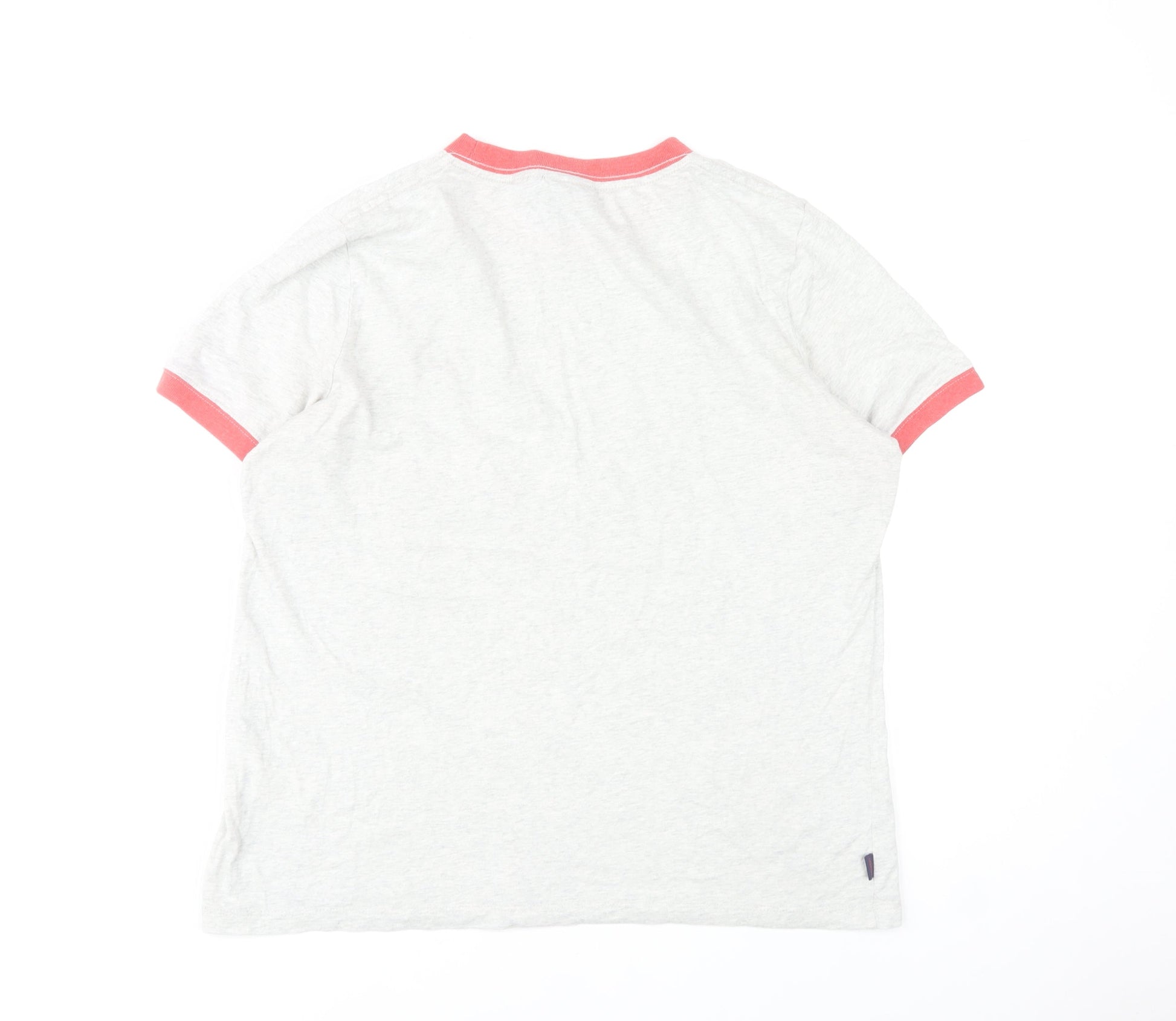 Superdry Womens Grey & Coral Ringer T-Shirt UK 12 Cotton Casual Top