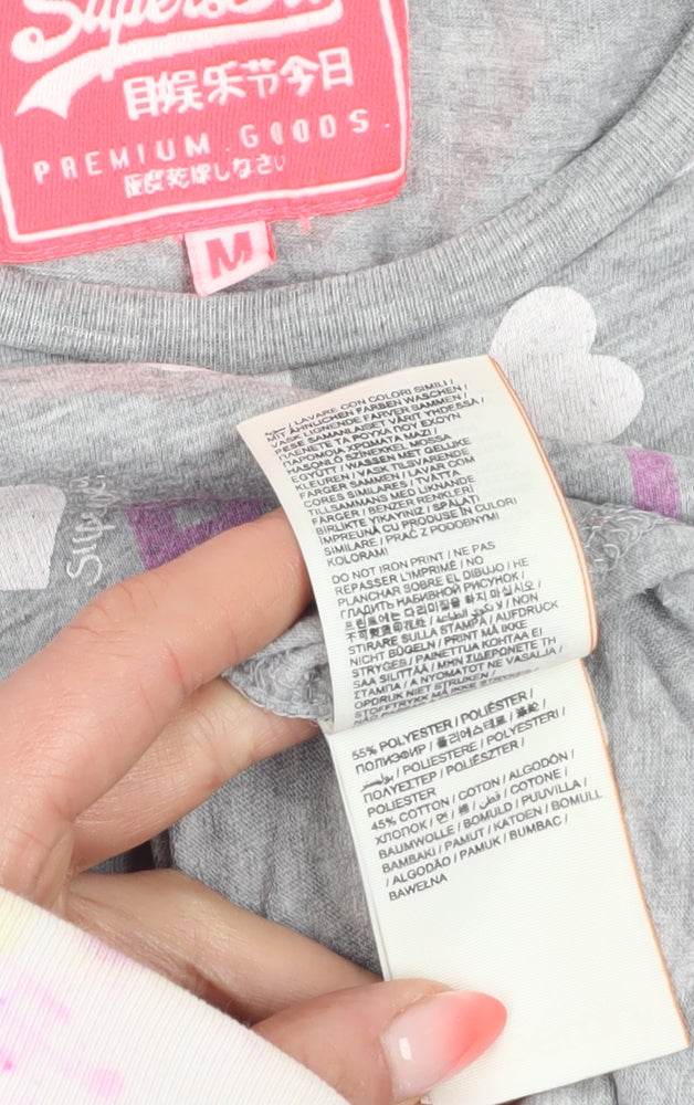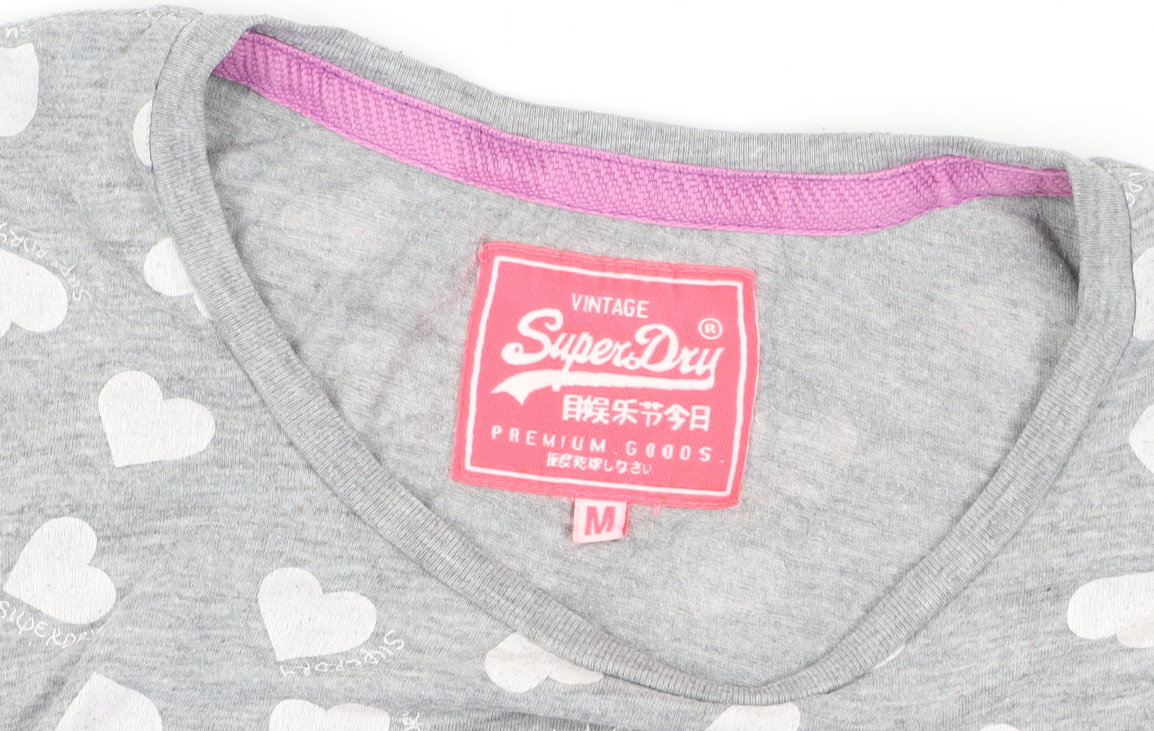 Superdry Women's Grey Heart T-Shirt, M, Basic Style