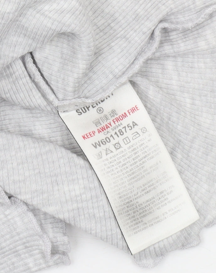 Superdry Women's Grey Lace Trim Square Neck Slim Fit T-Shirt Size 6