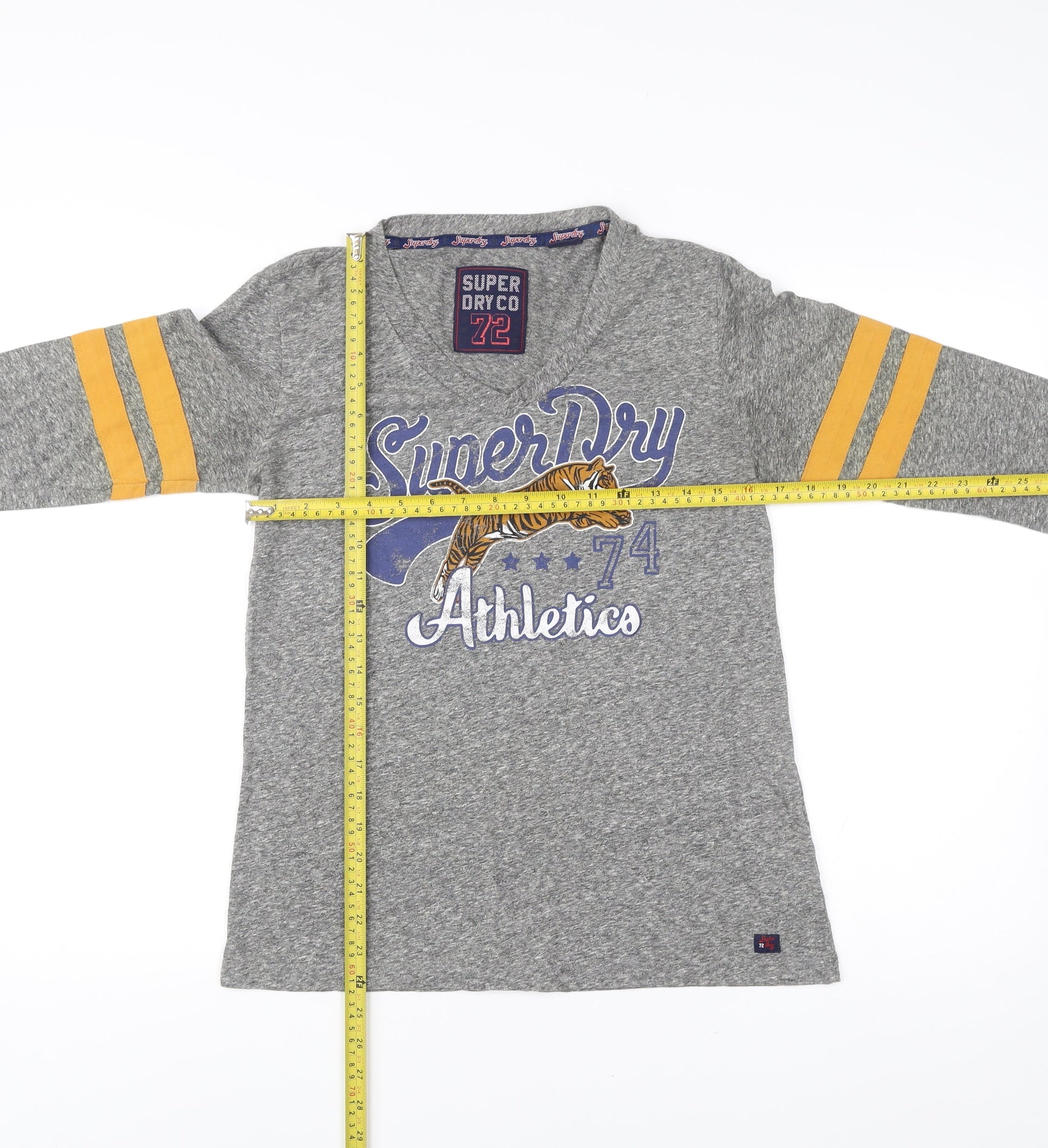Superdry Womens Grey Long Sleeve Jersey T-Shirt Size 12 V-Neck Athletic