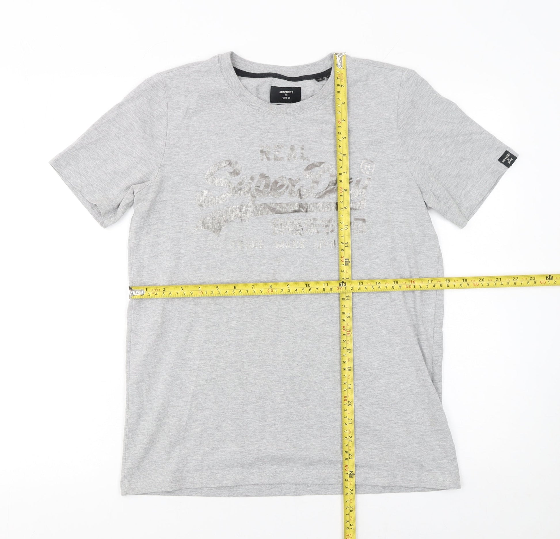 Superdry Women's Grey Printed T-Shirt UK 10 Short Sleeve Crew Neck