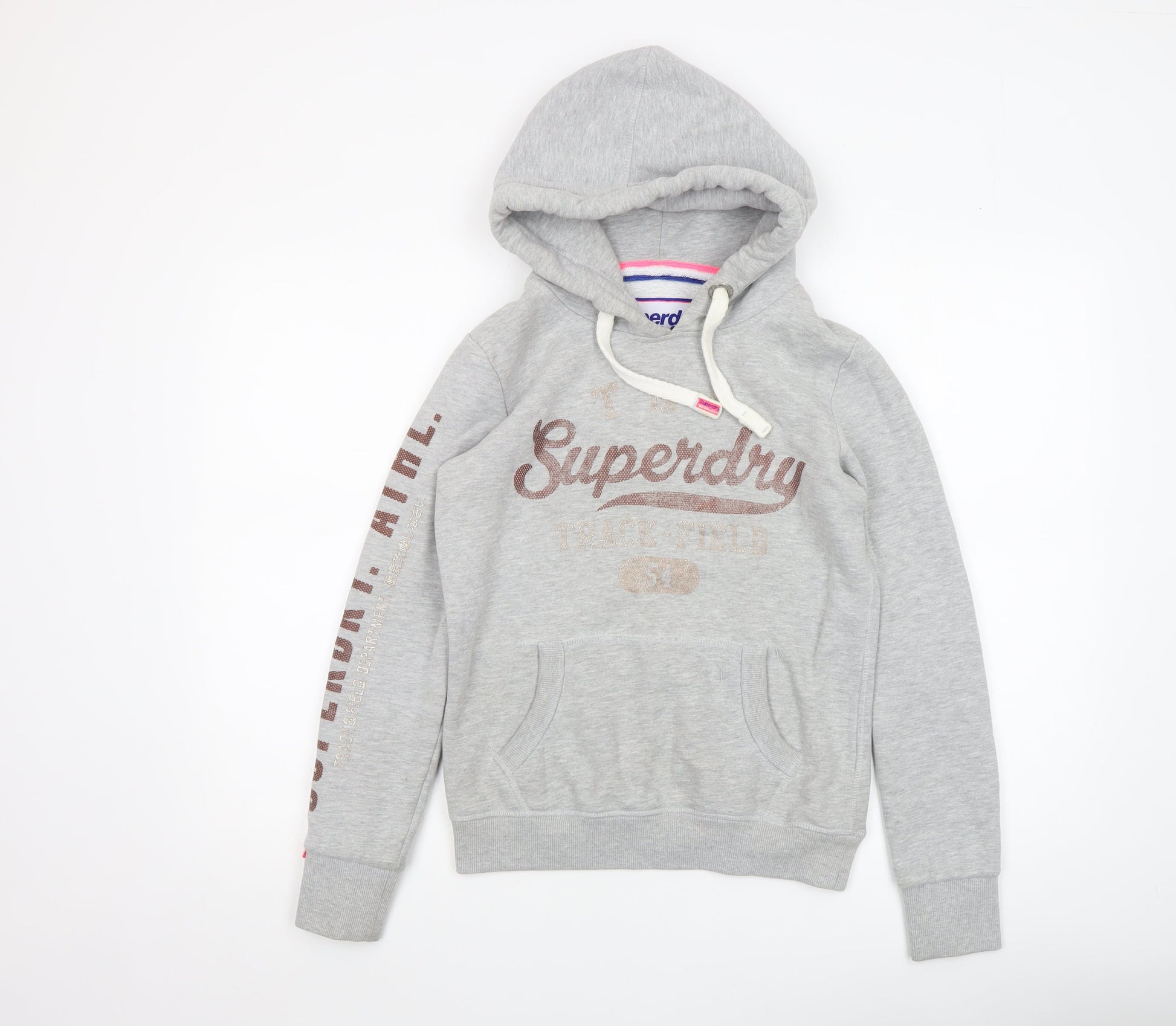 Superdry Womens Grey Pullover Hoodie Size UK 10 Track & Field Logo