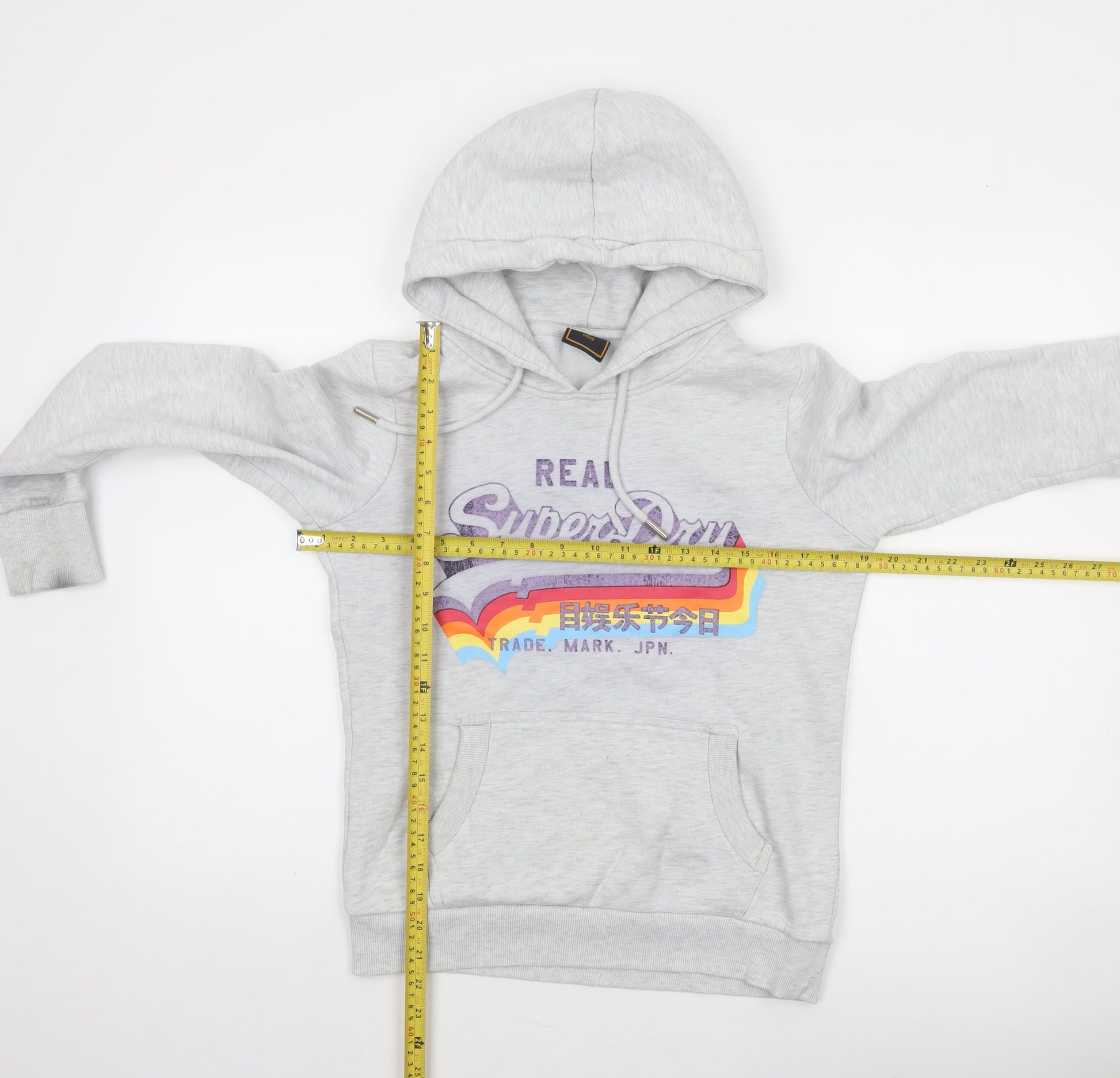 Superdry Women's Grey Pullover Hoodie UK 10 Graphic Logo Sweatshirt