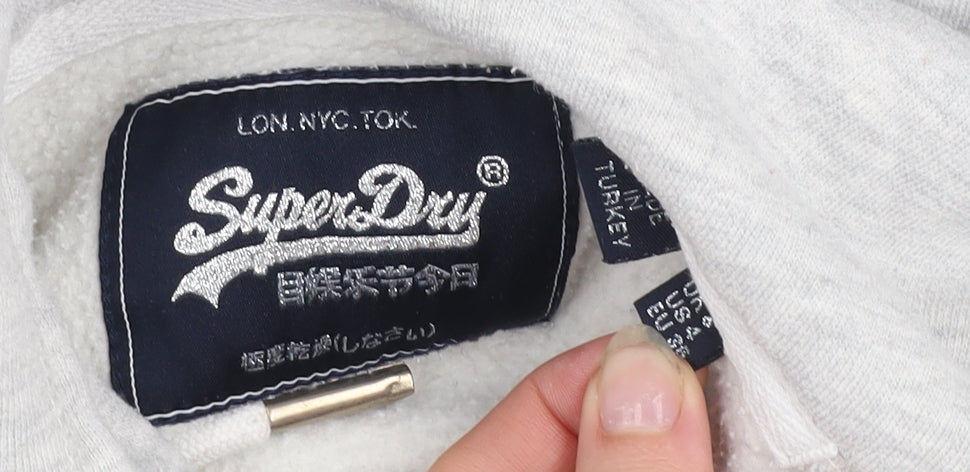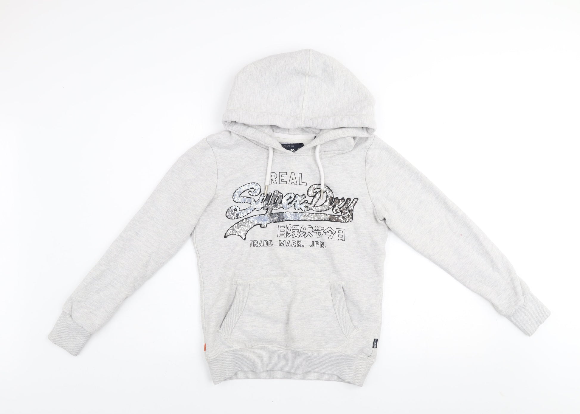 Superdry Womens Grey Sequin Logo Pullover Hoodie Size 8