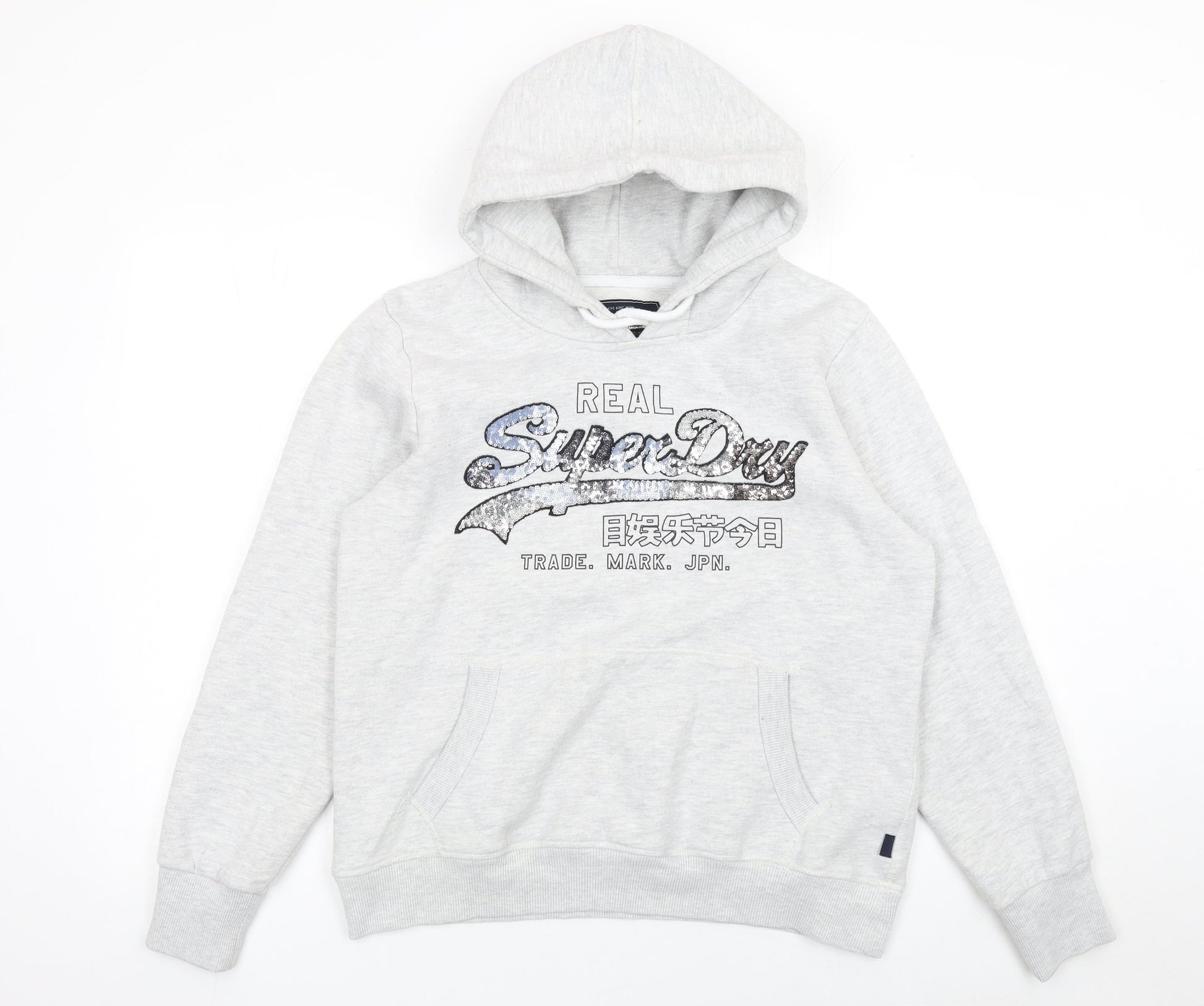 Superdry Womens Grey Sequin Logo Pullover Hoodie UK 16