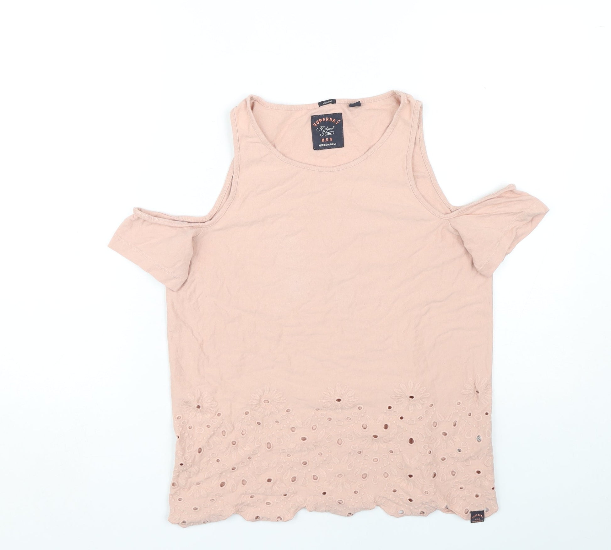 Superdry Women's Pink Cold Shoulder Embroidered Top M