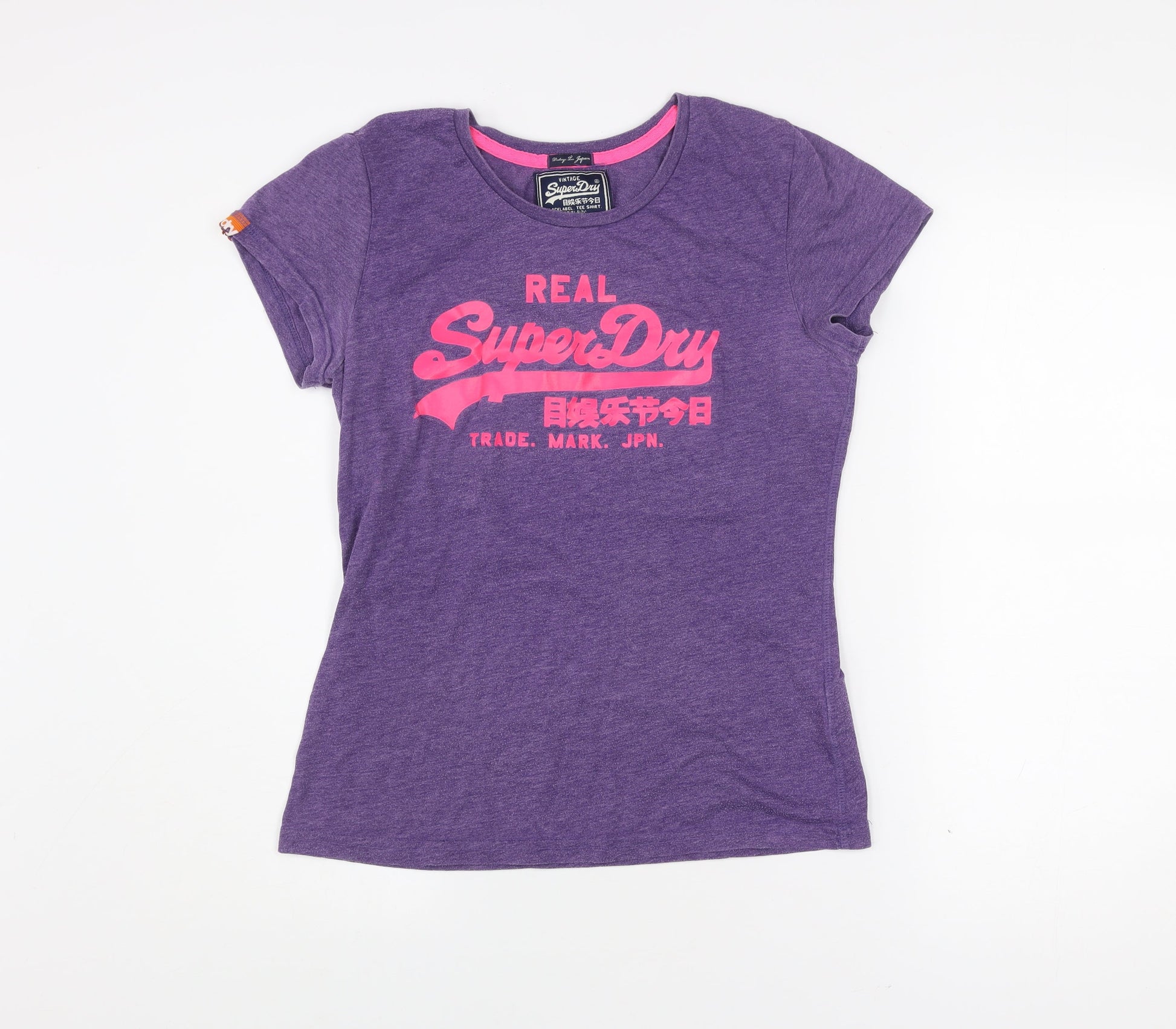 Superdry Womens Purple Crew Neck T-Shirt Size L Casual Jersey