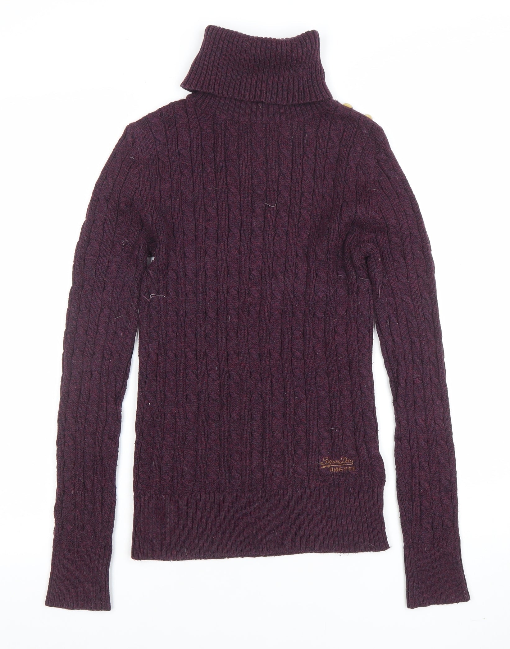 Superdry Womens Purple Roll Neck Cable-Knit Jumper Size S