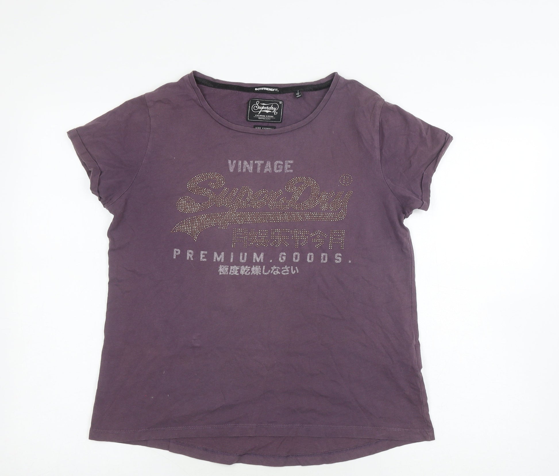 Superdry Women's Purple Vintage T-Shirt, 2XS, Relaxed Fit