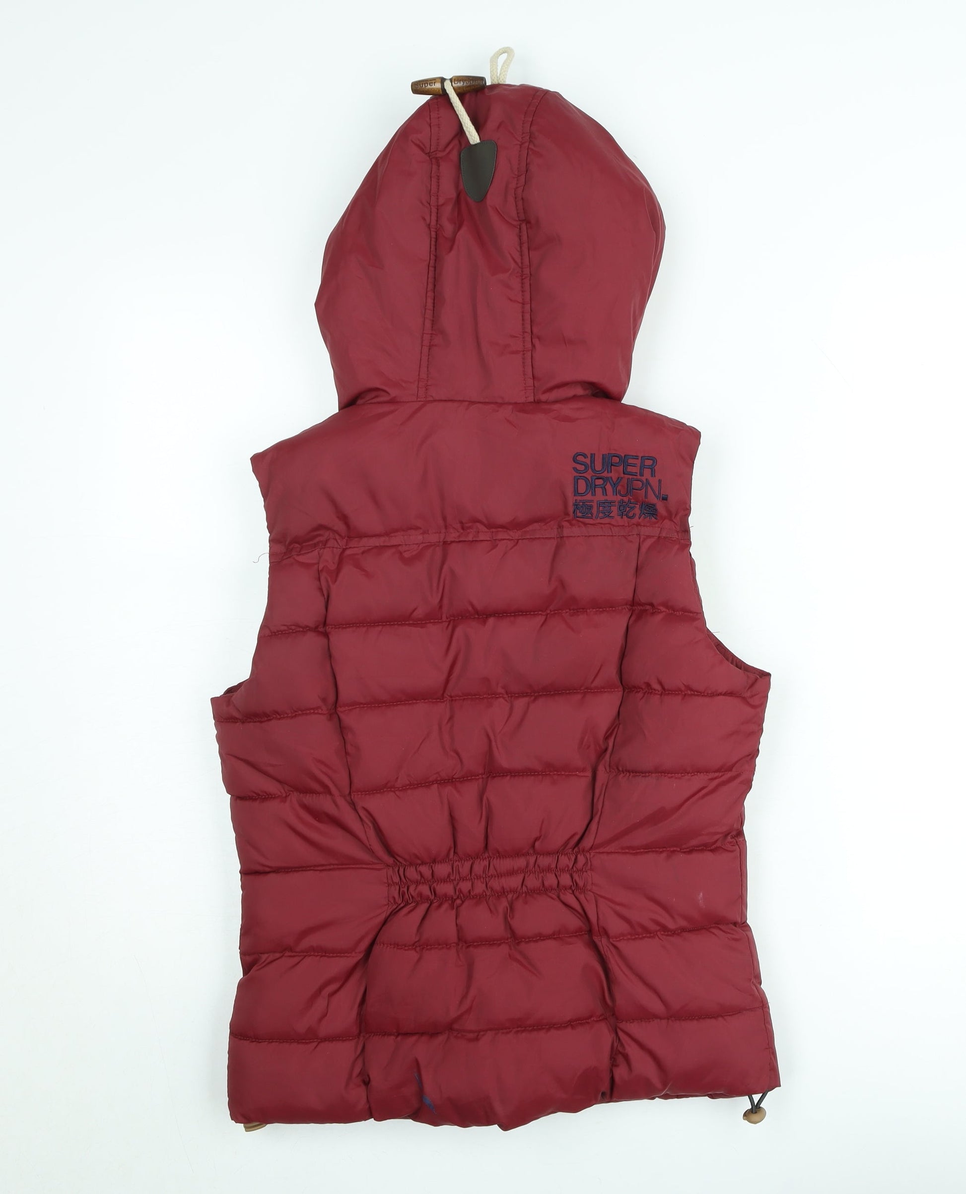 Superdry Women's Red Hooded Puffer Waistcoat XS Polyester Toggle