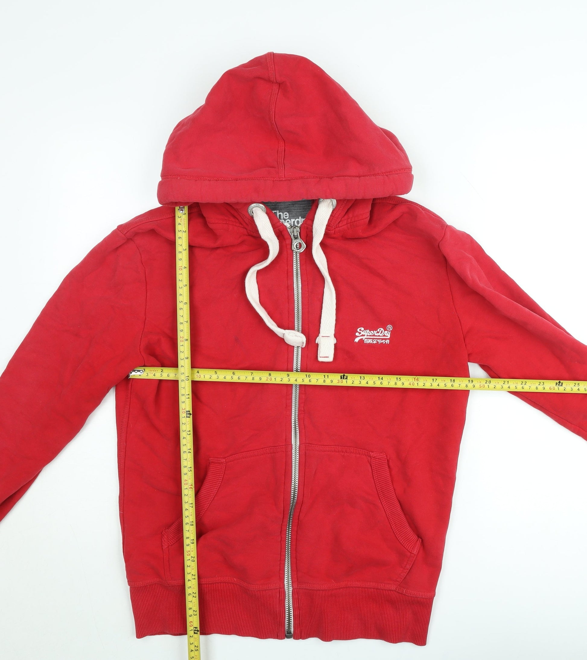 Superdry Women's Red Hooded Zip Jacket Size S Fleece Lined