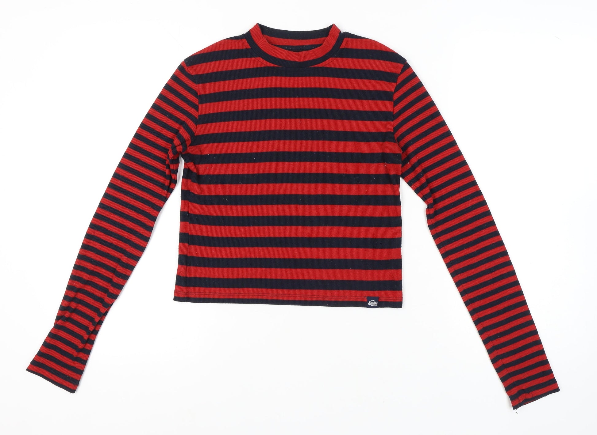 Superdry Women's Red Striped Cropped T-Shirt, M