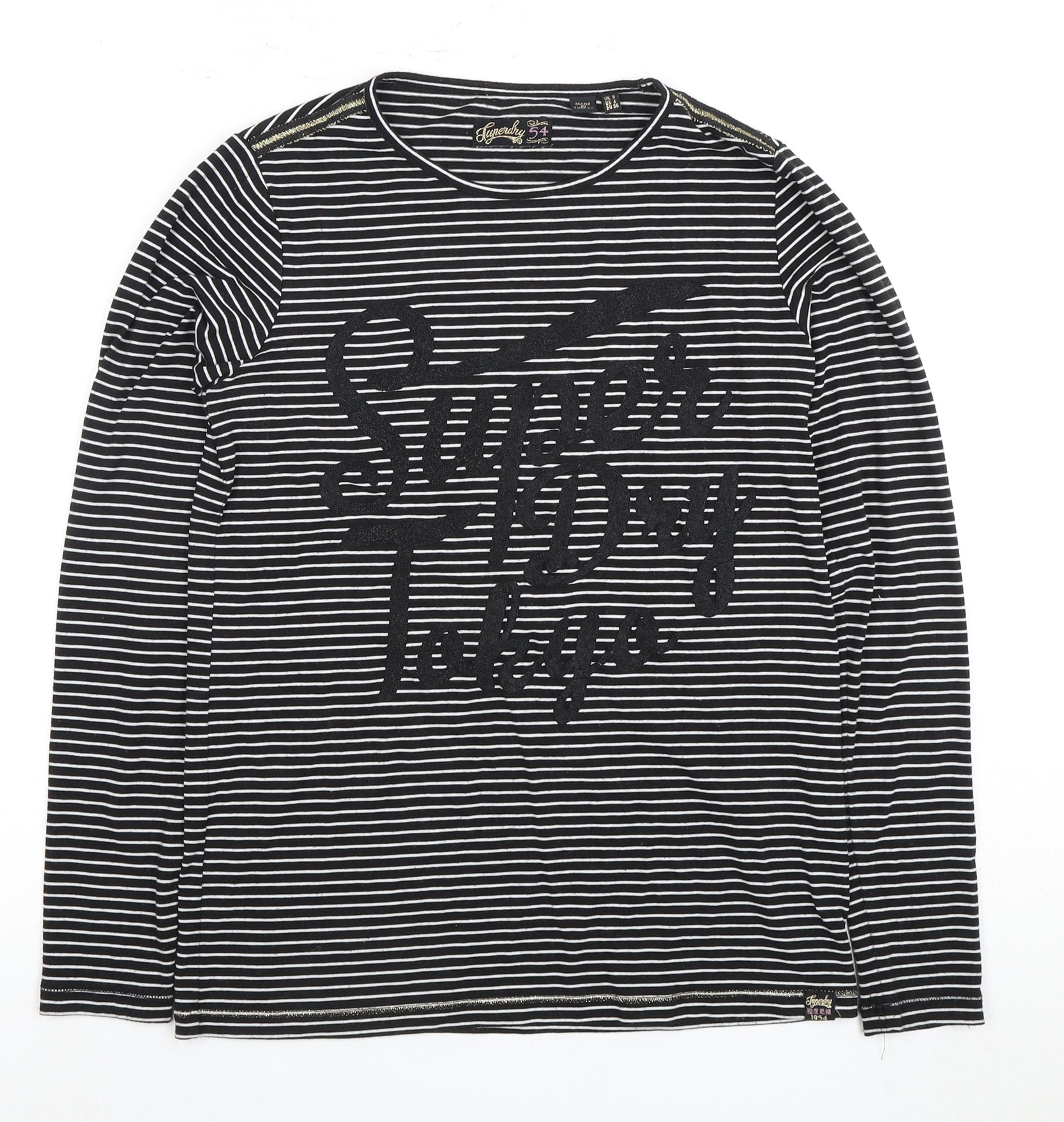 Superdry Women's Striped T-Shirt, UK 8, Black