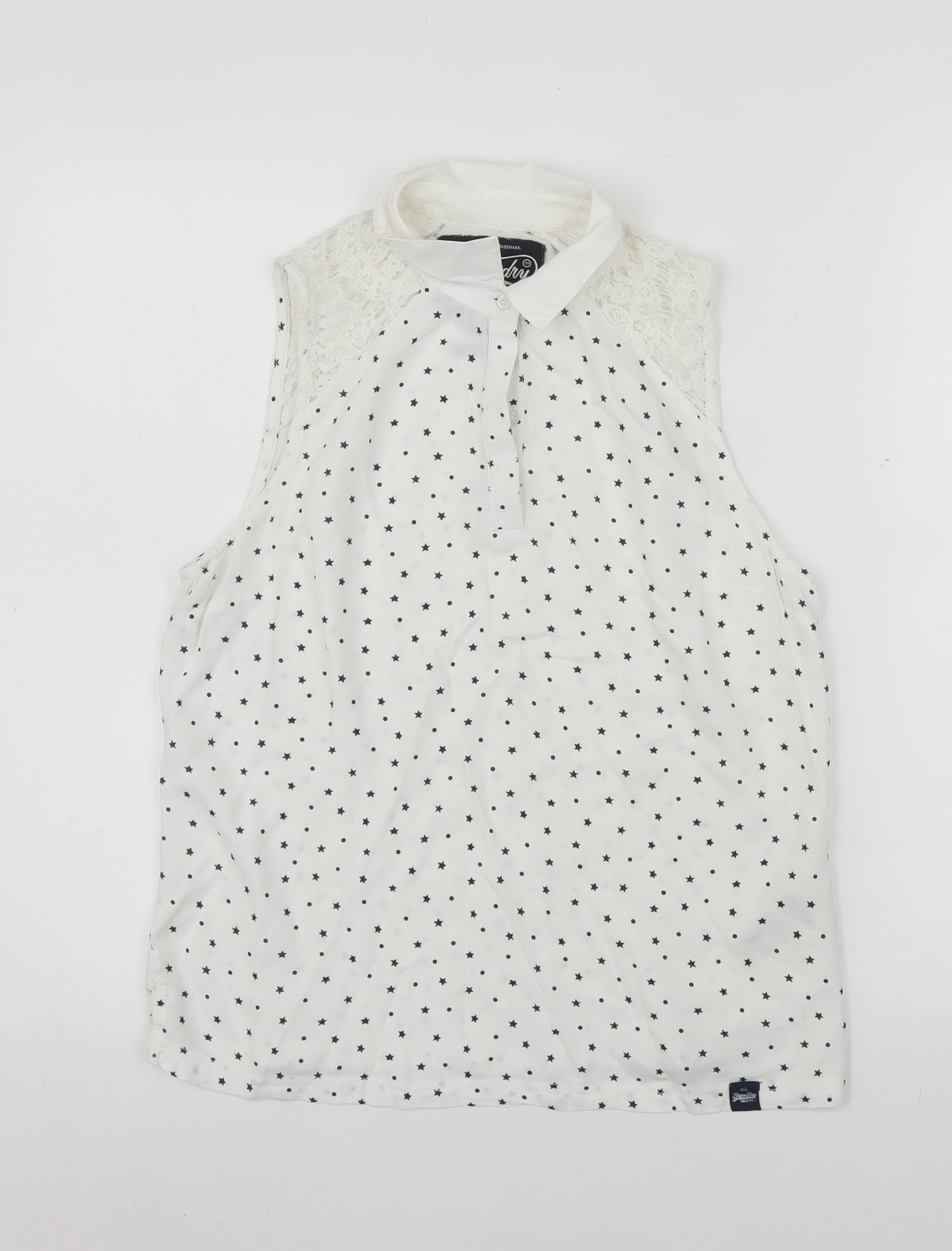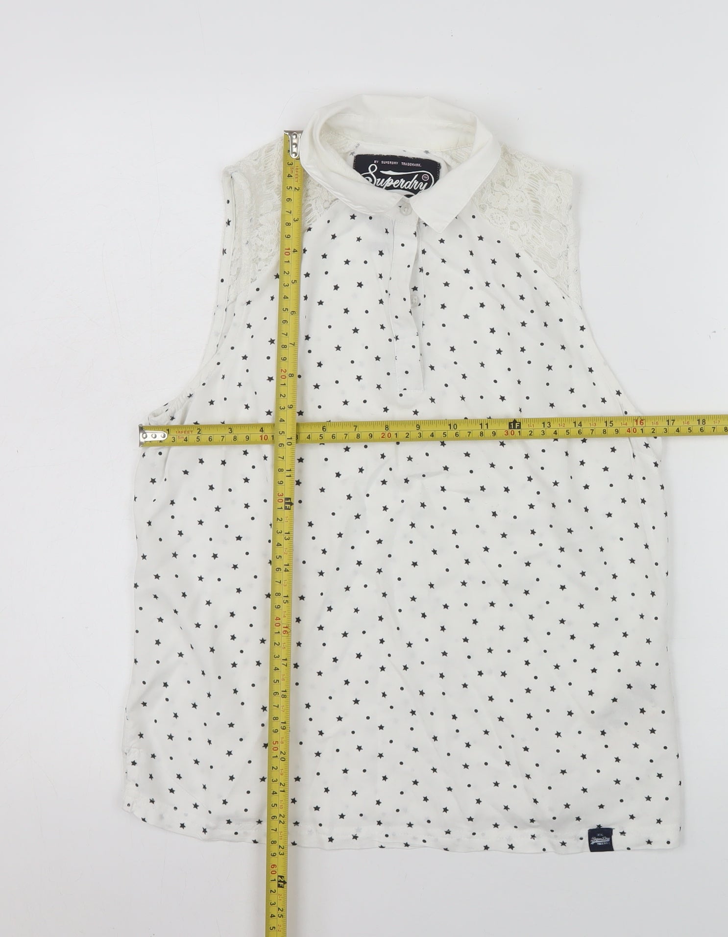 Superdry Womens White Collared Sleeveless Star Print Blouse Size M