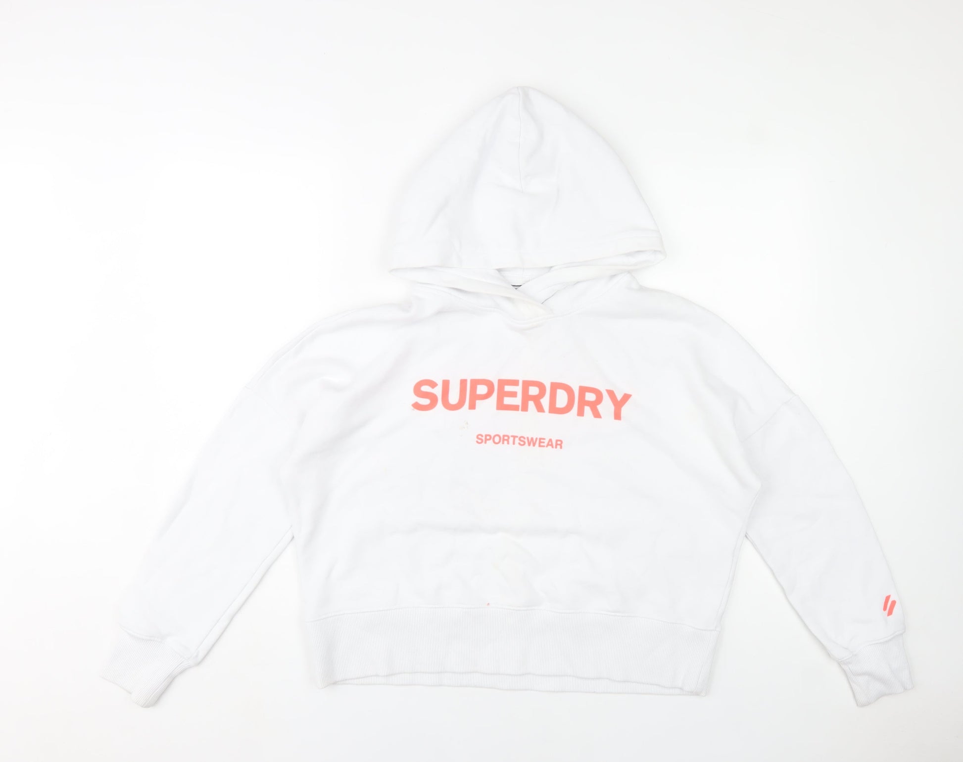 Superdry Womens White Hoodie UK 10 Pullover Sportswear Logo Cotton