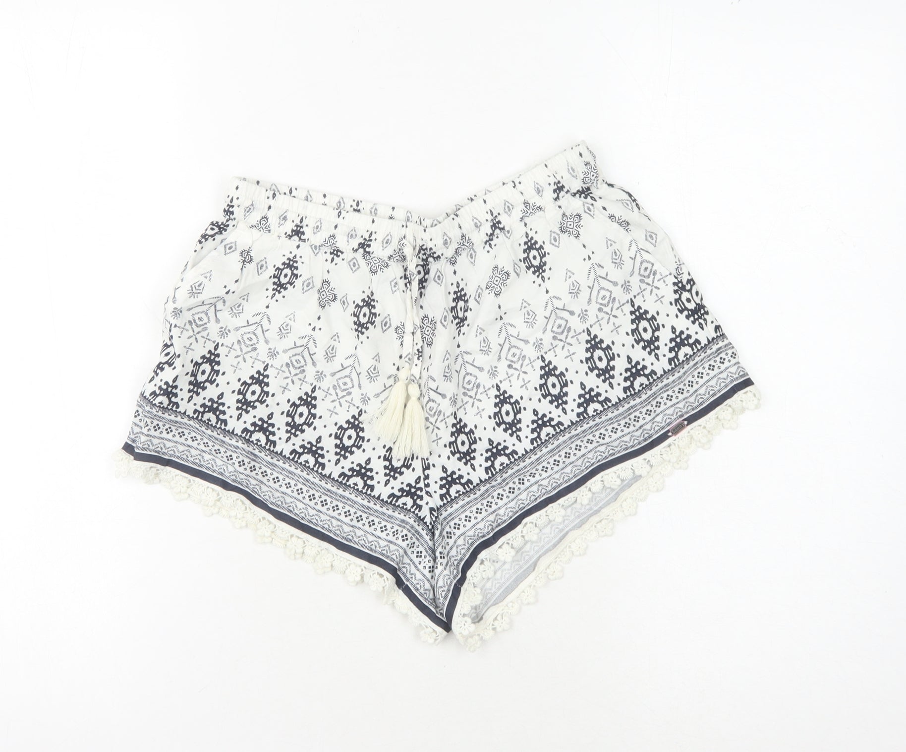 Superdry Women's White Printed Shorts with Tassels