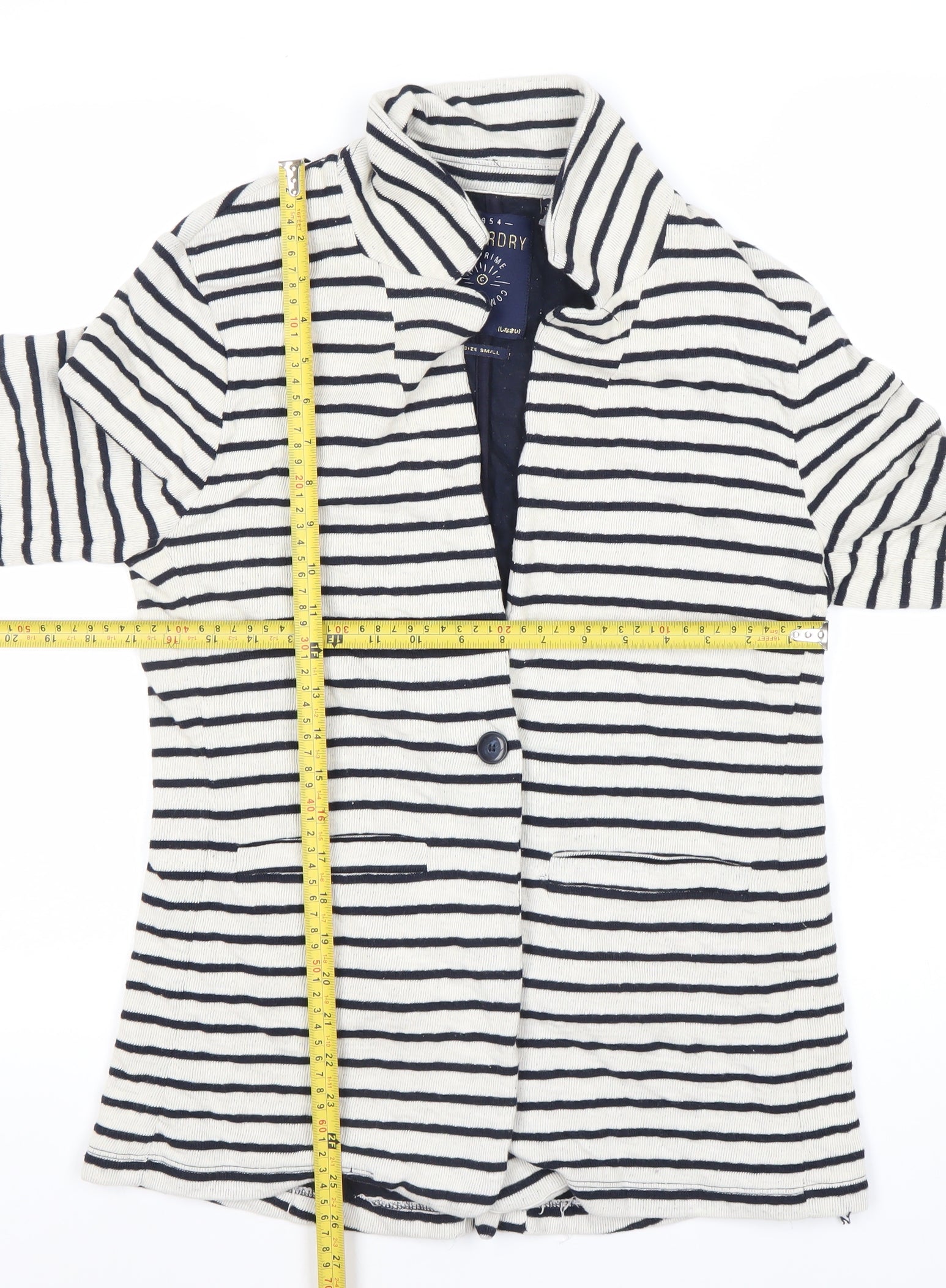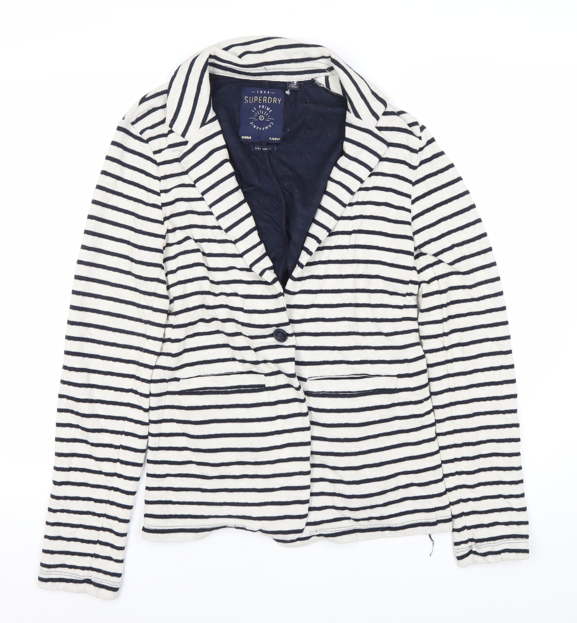 Superdry Women's White Striped Blazer Size S Notch Lapel Casual