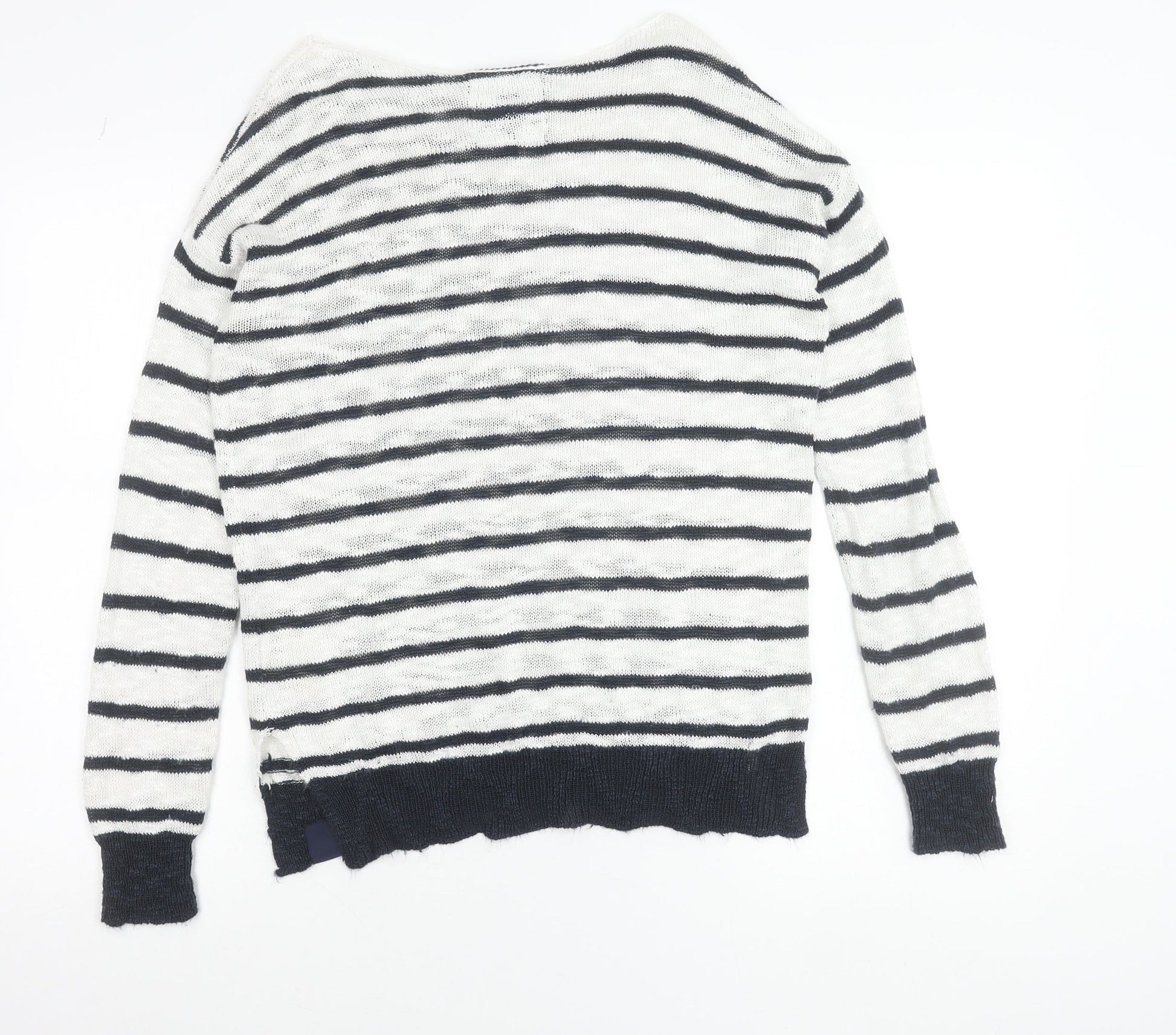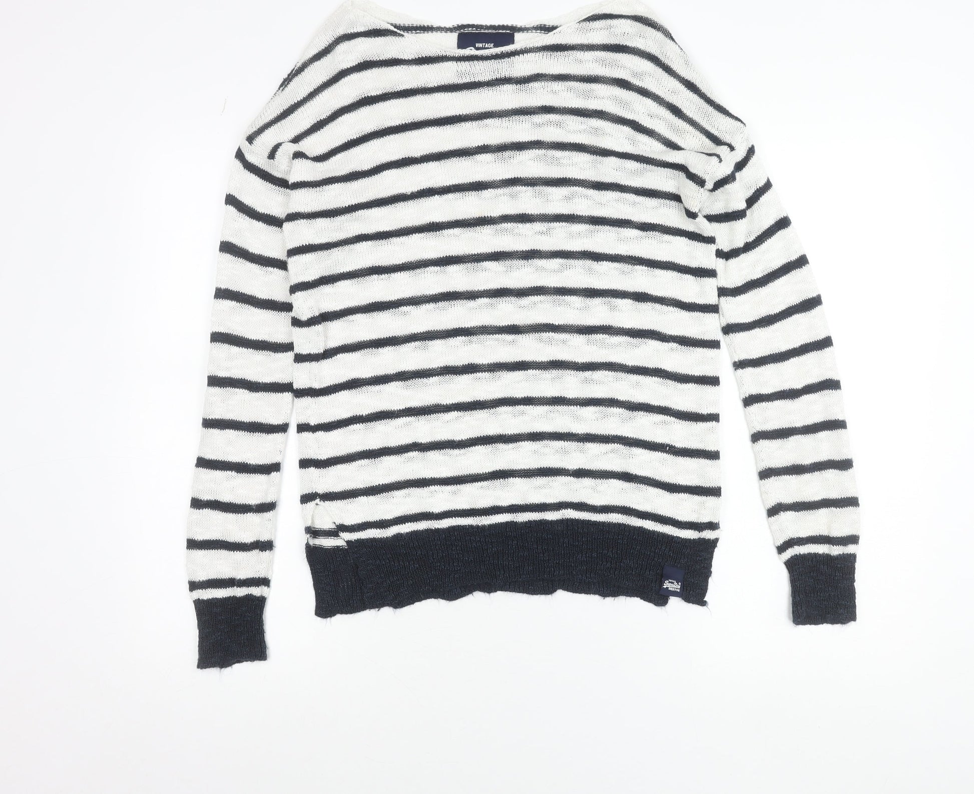 Superdry Women's White Striped Boat Neck Pullover Jumper Size S